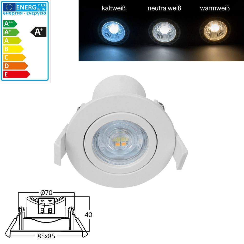 7W LED Einbauspot Einbaustrahler Einbauleuchte | 670 Lm | schwenkbar | mit Einstel