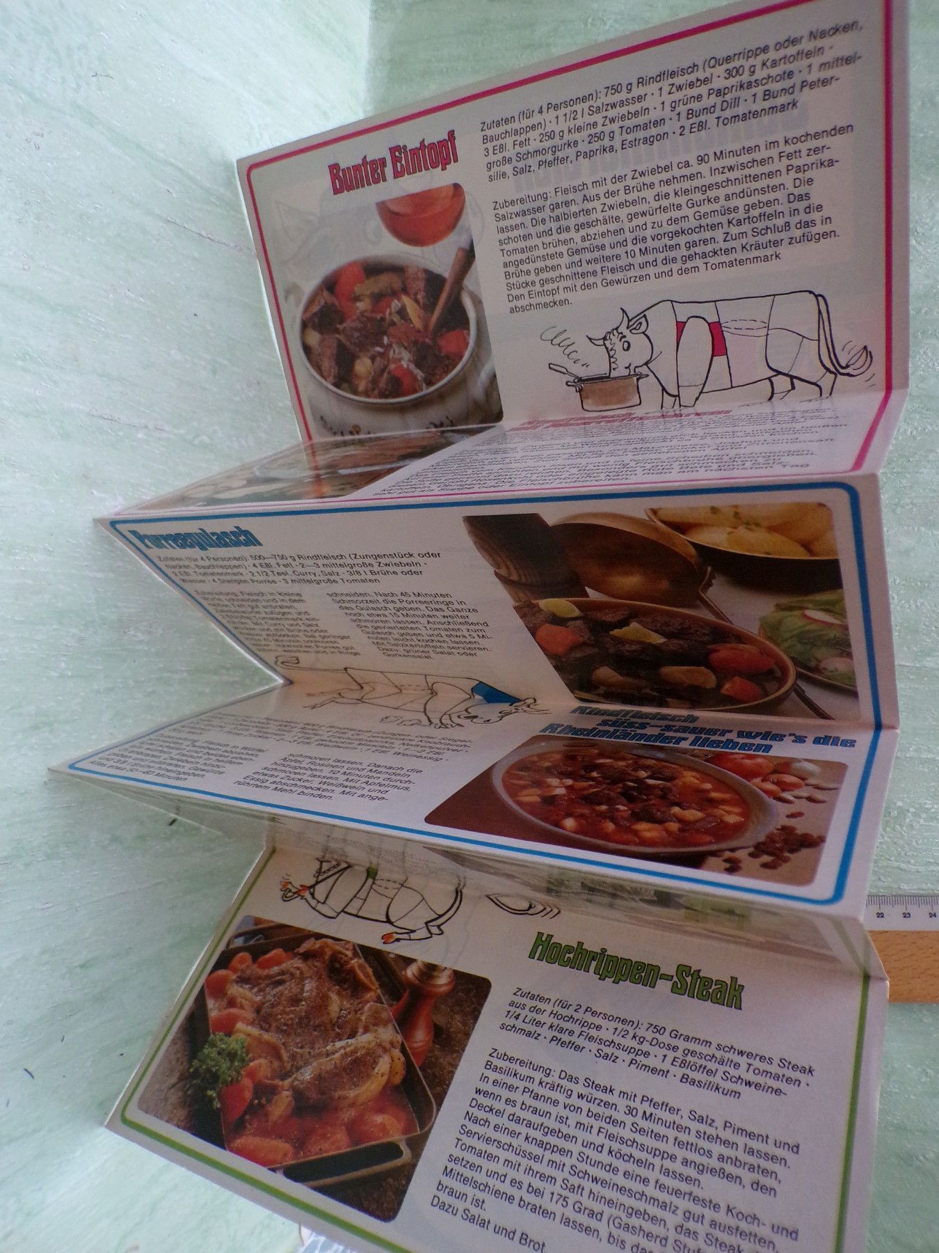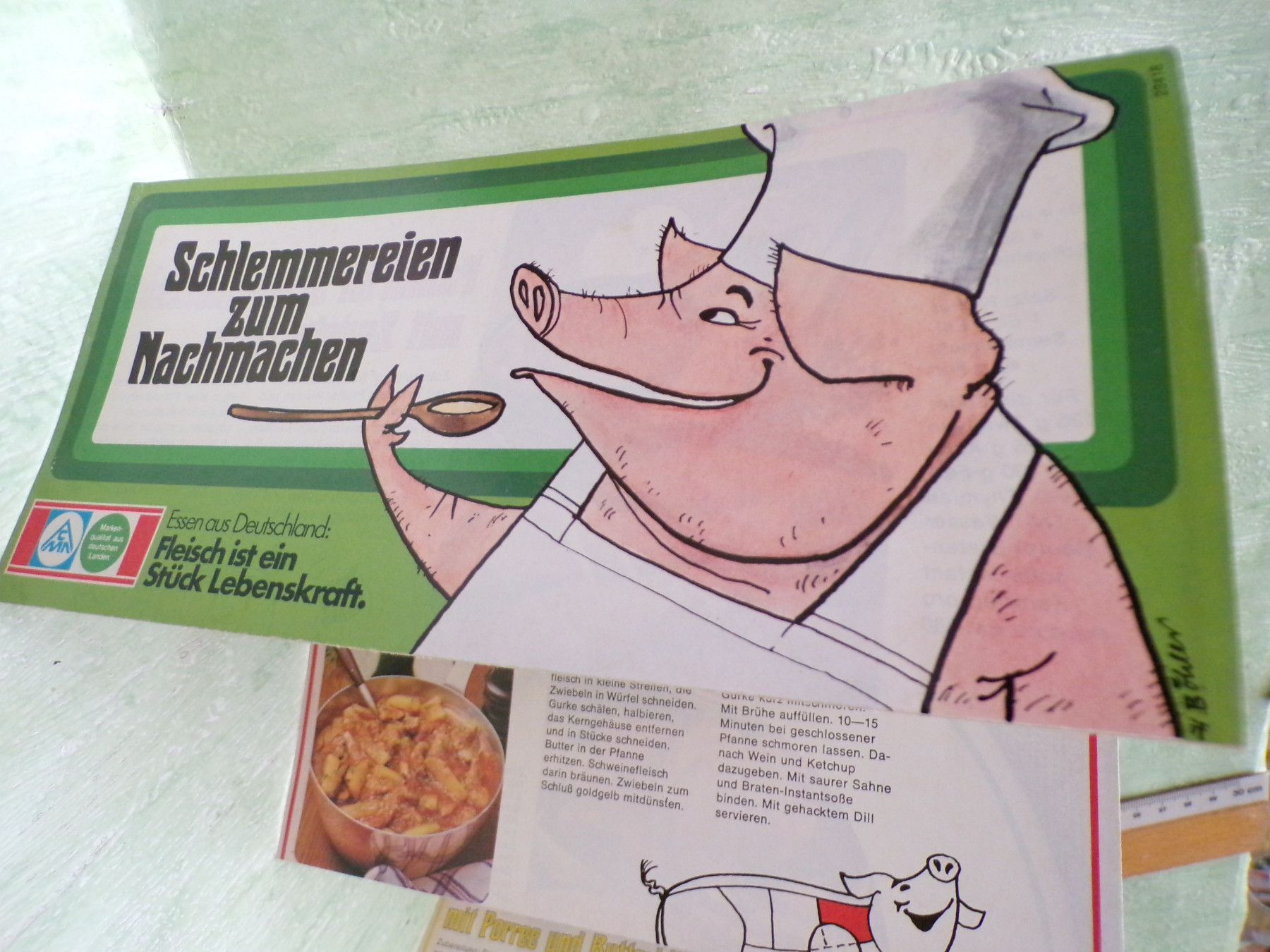 Jugend- & Kinderbücher ... Erinnerungen ..... . . 7 alte Werbeleporellos der Centrale Marketing Gesellschaft der deutschen Agrarwirtschaft , Bonn . . Essen aus Deutschland Fleisch ist ein Stück Lebenskraft CMA wurde 2009 aufgelöst . je 12 Seiten mit Rezepten: . rund ums Kalb 2 x rund ums Schwein