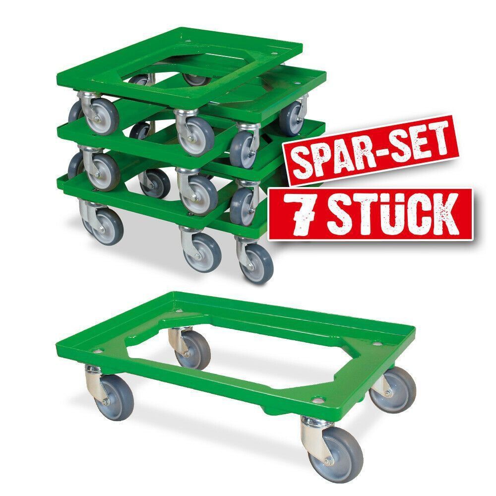 7x Logistikroller/ Kistenroller für Behälter 600 x 400 mm, Tragkraft 250 kg, grün
