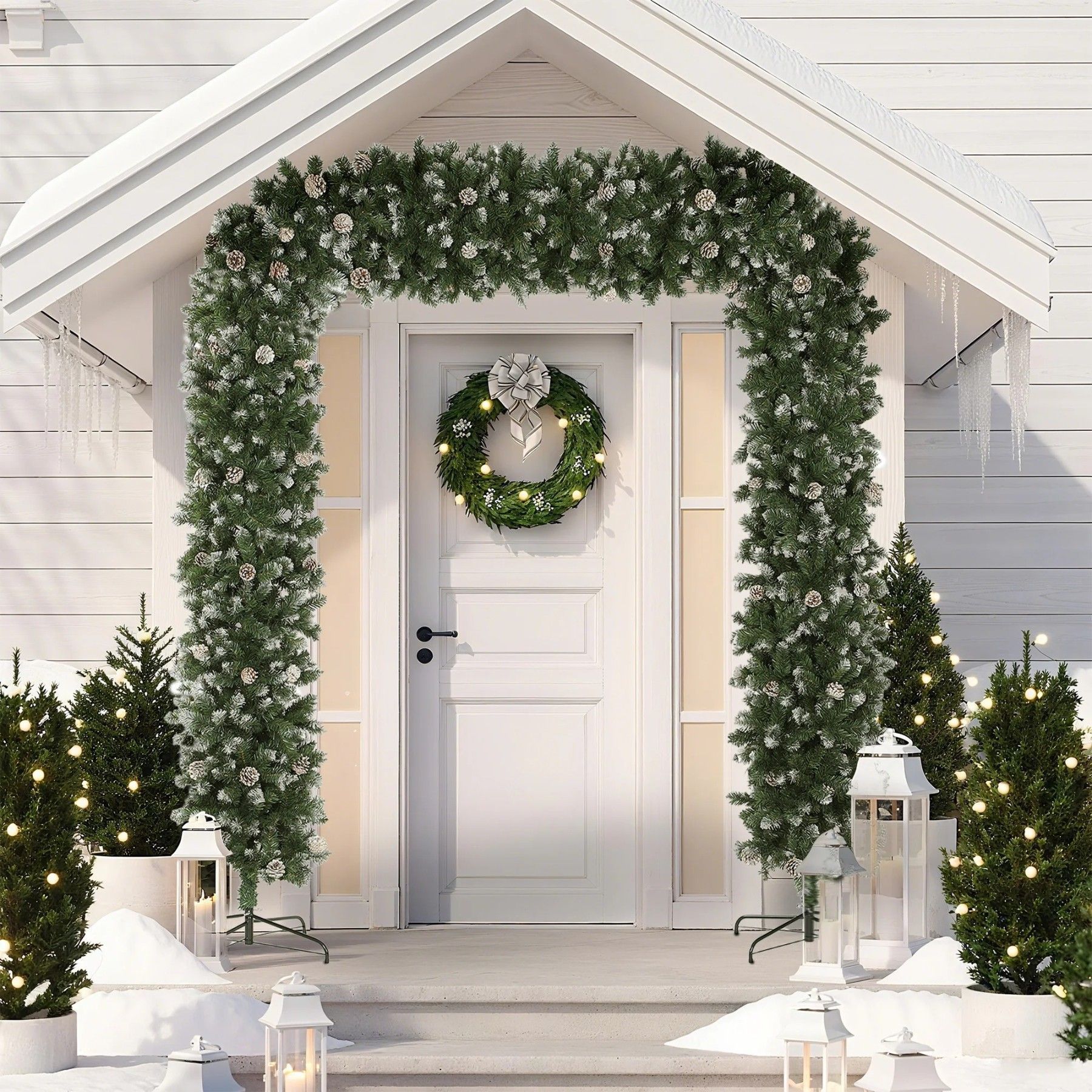 8.2-foot snow frosted Christmas tree arch with 2100 tips for doorway or room decor. Creates a dramatic winter entrance. Easy to install for a festive holiday display.