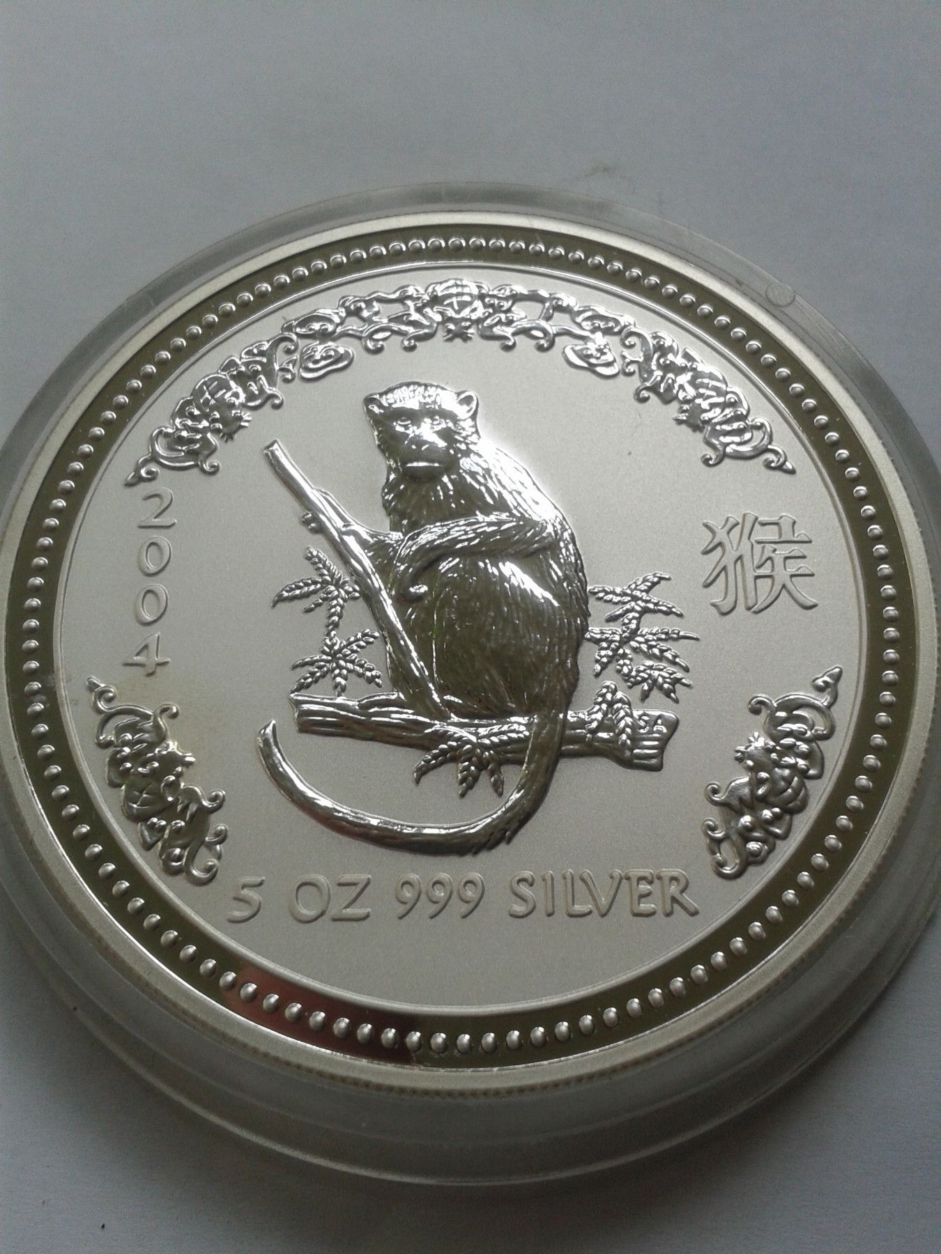 8$ 5 Unzen Silber 2004 Australien Lunar Affe 155,5g 999er Silber in Original-Münzdose bei Fragen: