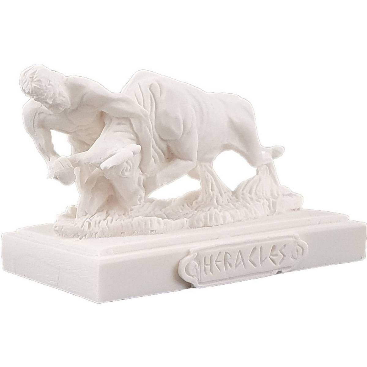 8,8cm Alabaster Figur Herkules Herakles kämpft mit Stier griechischer Gott Weiß