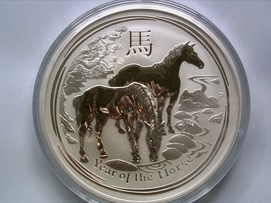 8$ Dollars 2014 Australien 5 Unzen 155,5g Silber Lunar Pferd bankfrisch in Münzdose
