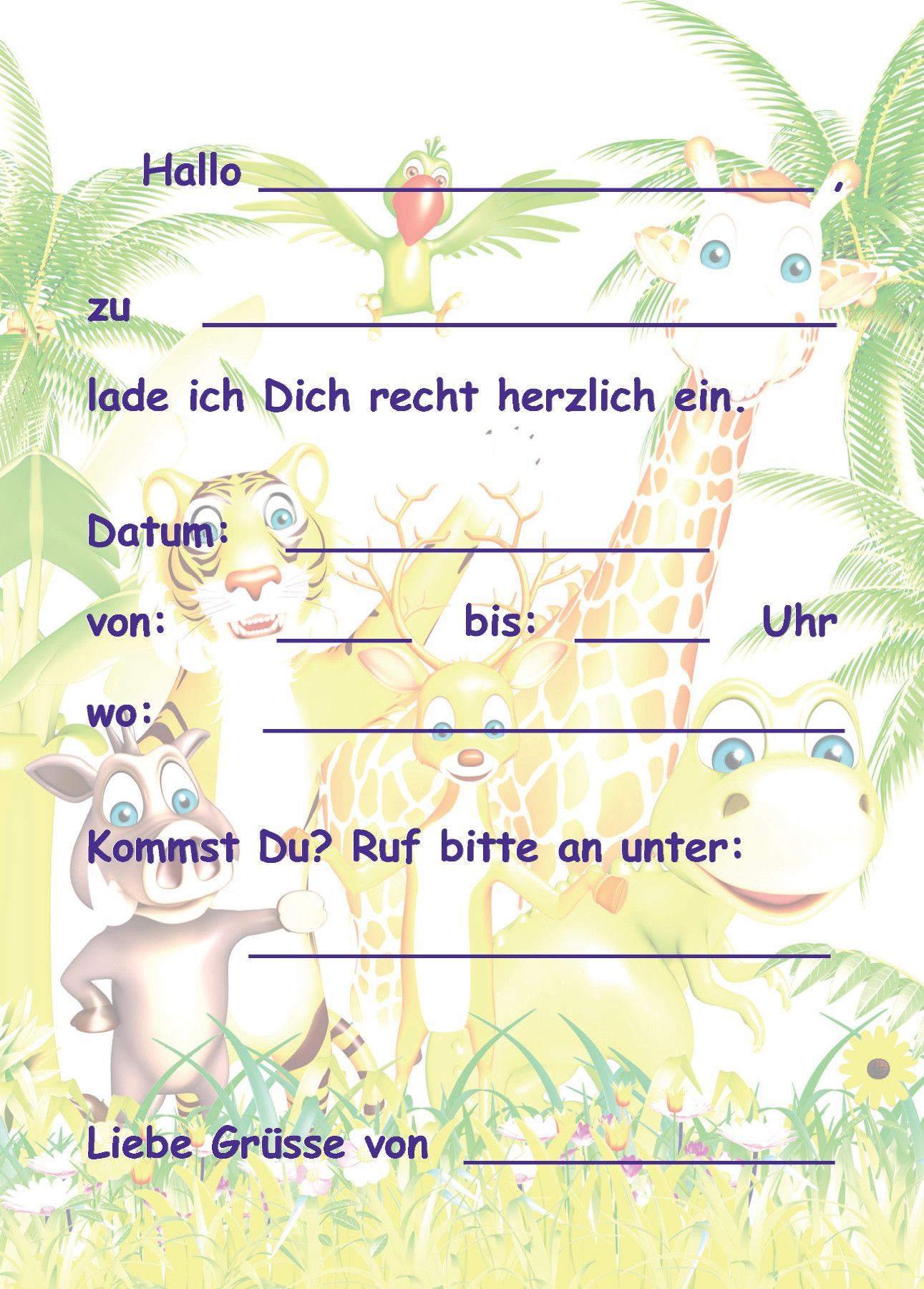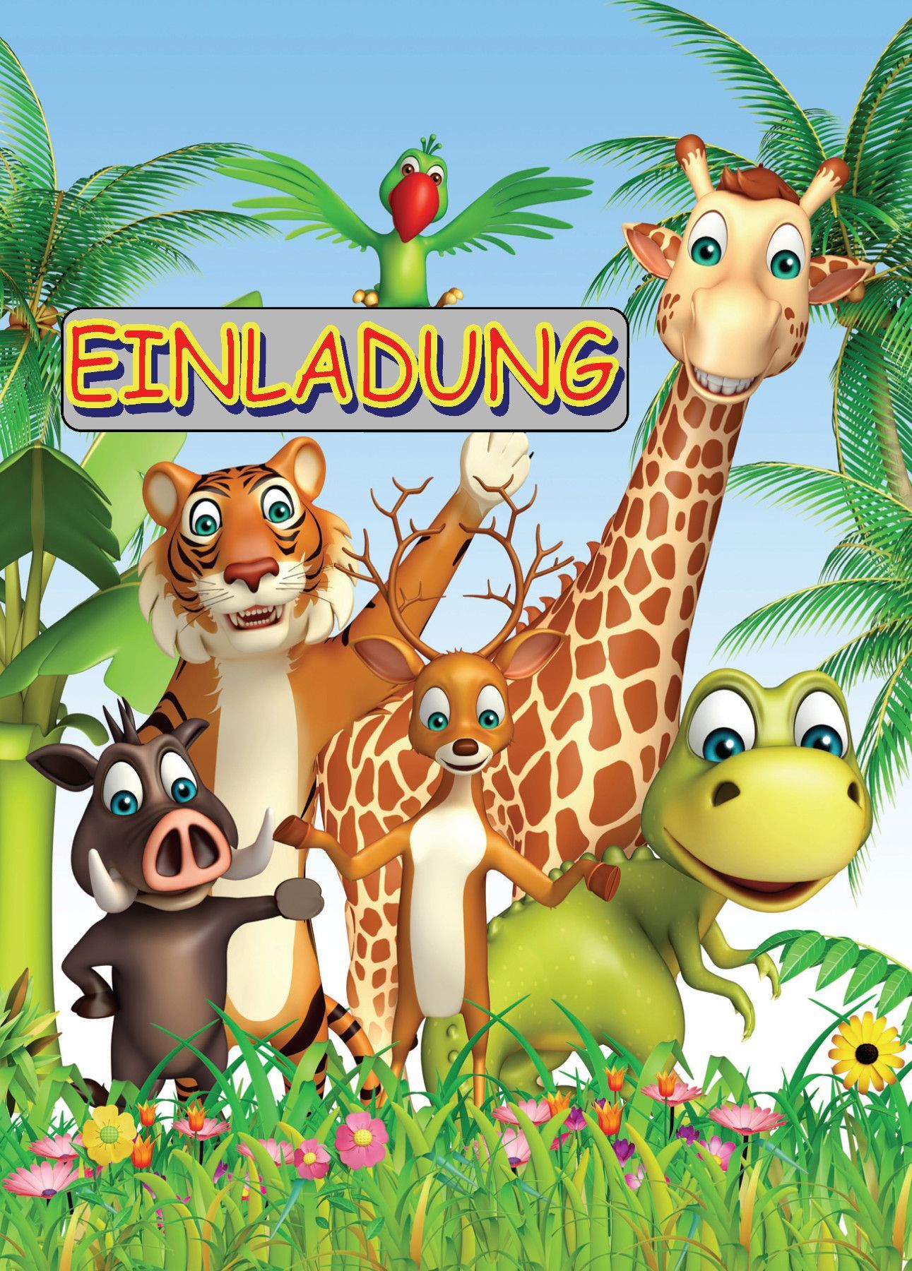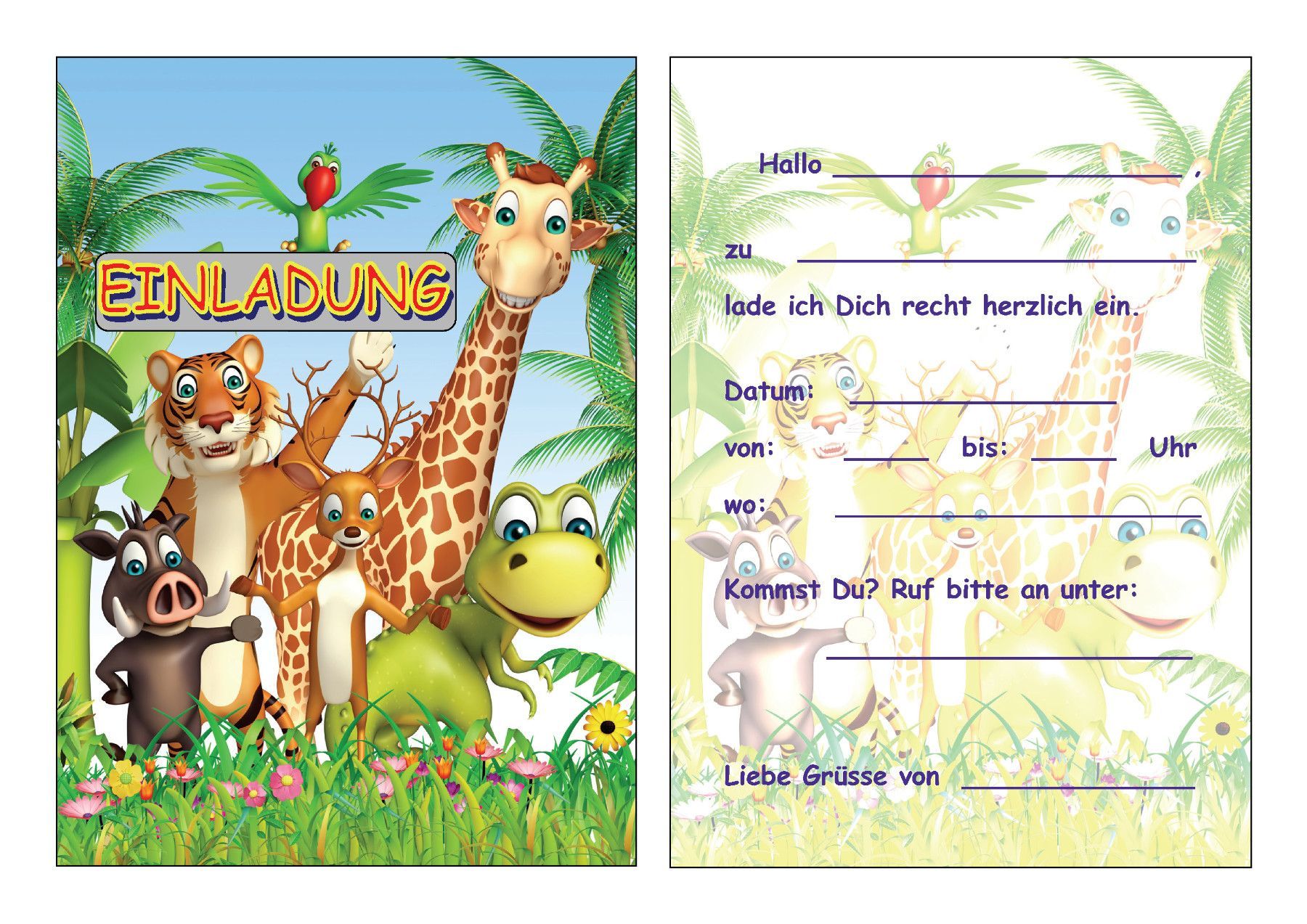 8 Einladungskarten Kinder Geburtstag Einladungen Zootiere Wildtiere Giraffe Tiger Ara