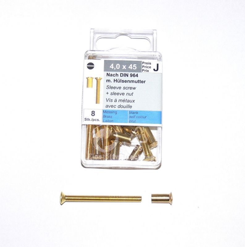 • 8 Hülsenschrauben M4 oder M5 , mit Hülsenmutter, Messing, Möbelschraube, DIN 964