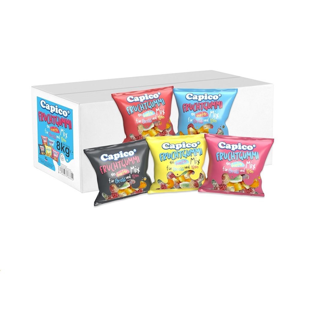 8-Kilogramm-Großpackung mit 286 einzeln verpackten Tütchen à 28 Gramm Bunter Fruchtgummi-Mix mit hygienischen wiederverschließbaren Beuteln Ideal als Wurfmaterial Giveaway Mitgebsel oder Verkaufsartikel für Karneval Langanhaltende Frische durch luftdicht versiegelte Verpackungen Hohe Kinderfreundlichkeit und Beliebtheit bei Groß und Klein