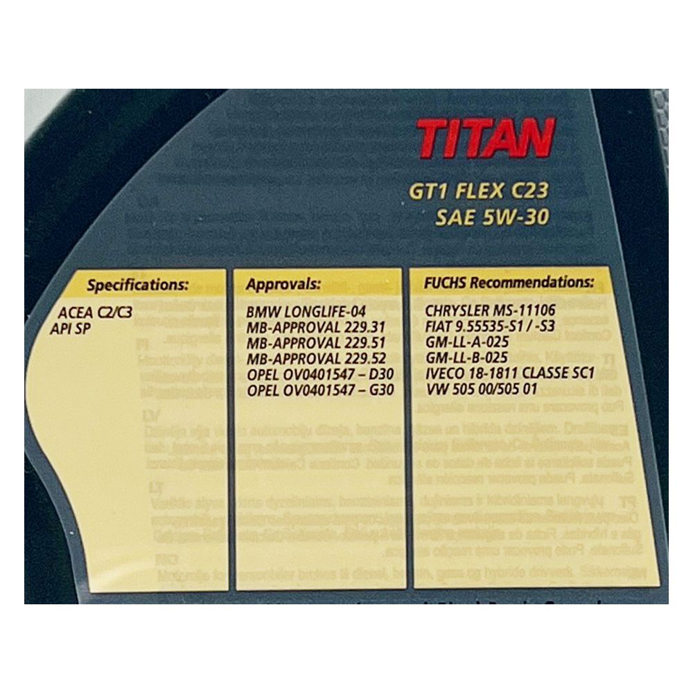 8 L Fuchs Titan GT1 Flex C23 5W-30 | BMW-LL-04 | MB 229.31 229.5 229.52