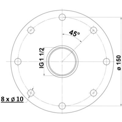 8 Loch Flanschdeckel mit 1 1/2" IG und Dichtung als Adapter für Elektroheizstäbe ink