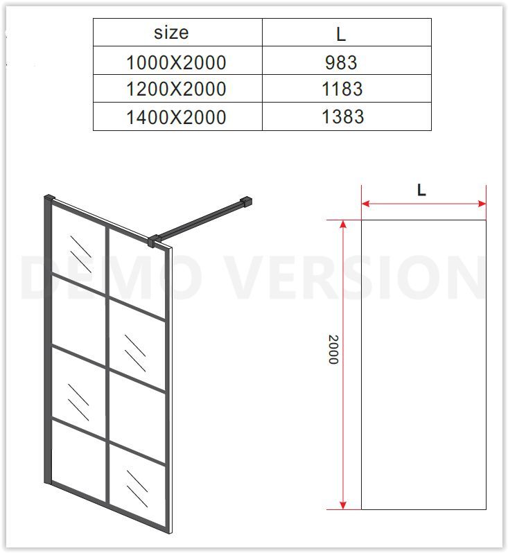 8 mm Duschwand Industrio 2.0 140 x 200 cm