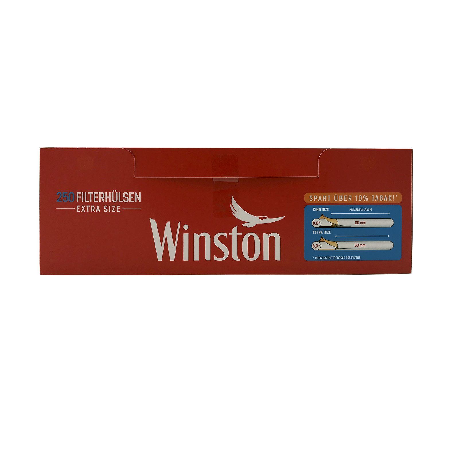 8 Pack Winston Extra Filterhülsen + 1 Autoaschenbecher (nicht wählbar) + 1 Zigarettenbox (nicht wählbar) Hülsen: Bei den Filterhülsen handelt es sich um Extra Filterhülsen mit langem Filter und kurzem Füllraum. In Abhängigkeit von der Stopffestigkeit und den persönlichen Stopfgewohnheiten können bei