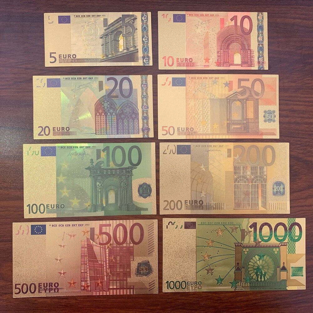 8 Scheine von 5 bis 1000 Euro Souvenier Banknoten Goldfolie (BN210225()