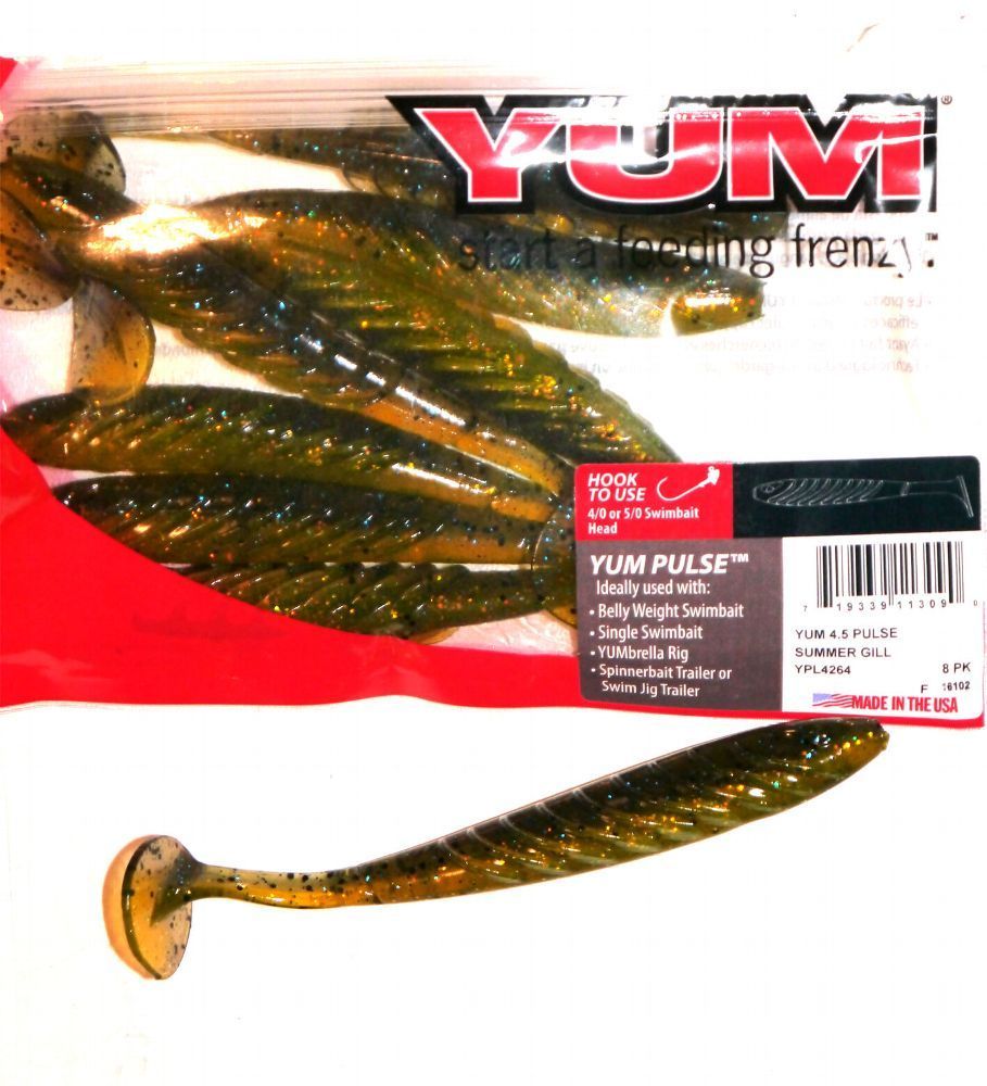 8 Stk YUM Pulse Shad Swim Bait USA-Softbait mit Flavour Zander Farbe: Summer Gill