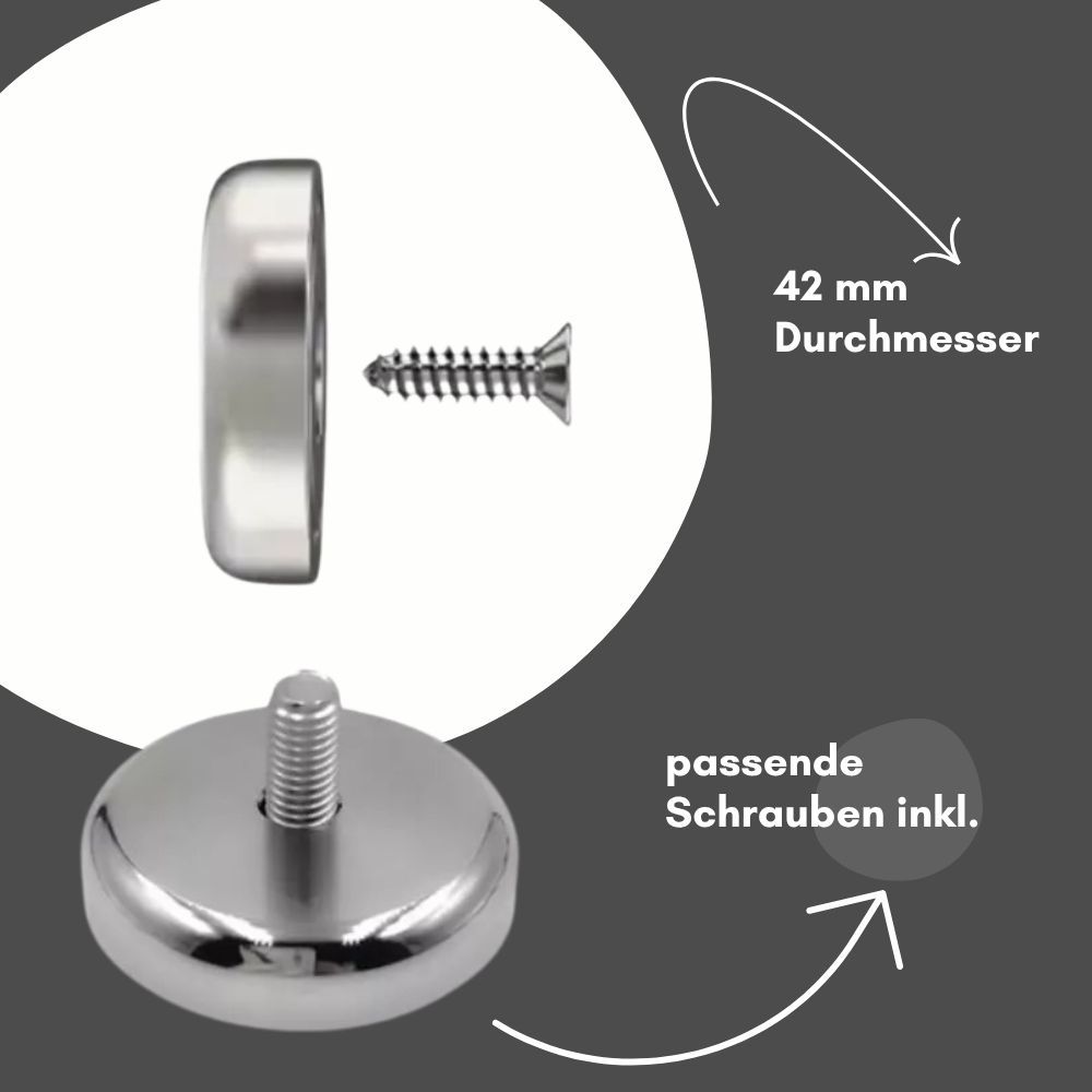 8 Stück Neodym Topfmagnet mit Senkbohrung Ø 42 mm – Haltekraft ca. 72 kg – Gewinde M6