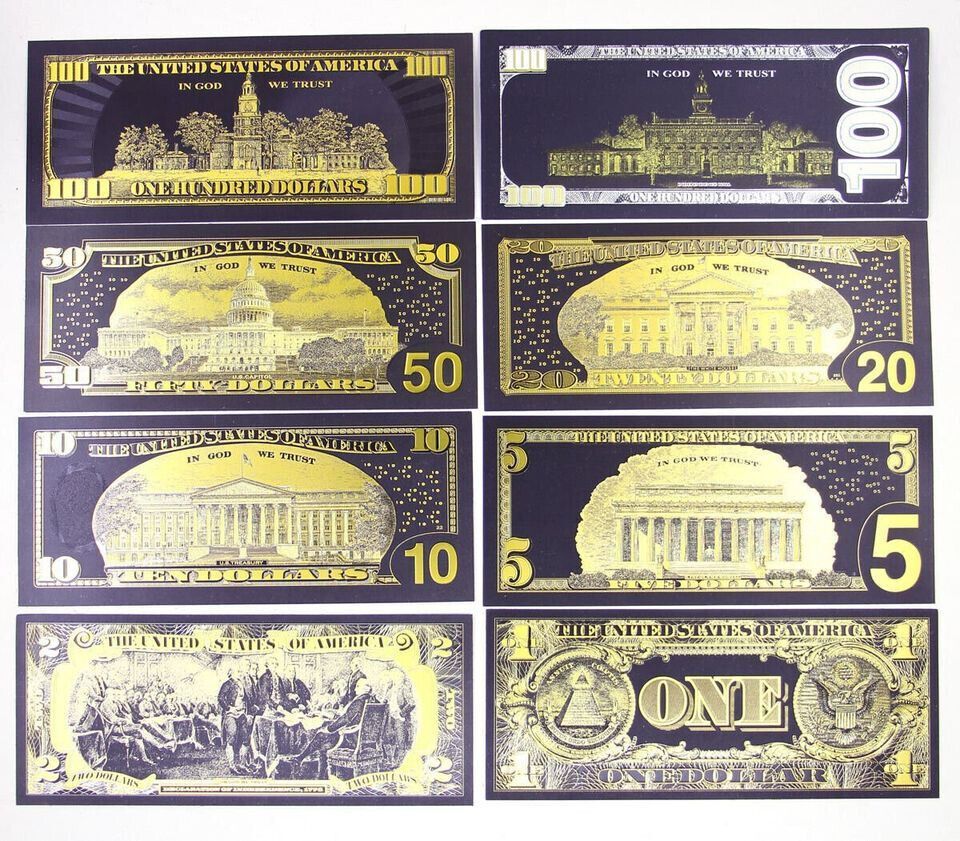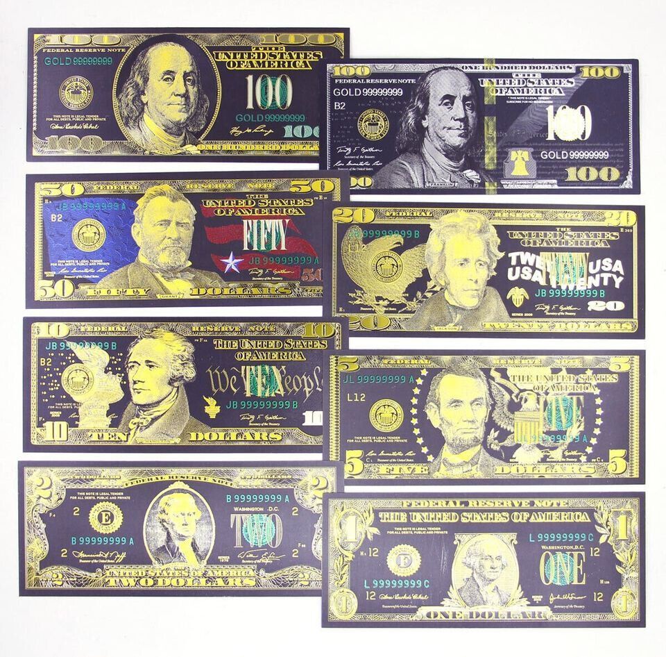 8 Stück schwarz vergoldete USA Sammler Banktnoten