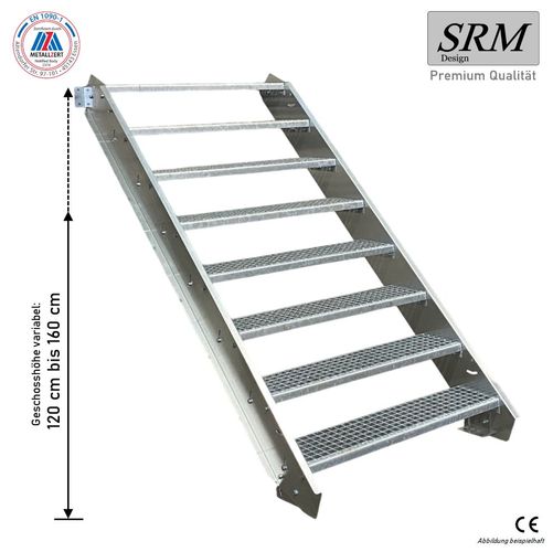 8 Stufen Stahltreppe Breite 60 - 160 cm Geschosshöhe 120 - 160 cm ohne Geländer