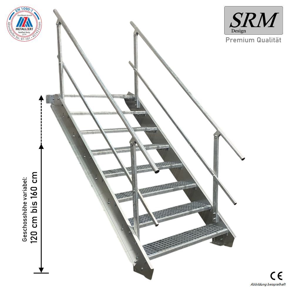 8 Stufen Stahltreppe Breite 60-160cm Geschosshöhe 120-160cm Geländer beidseitig