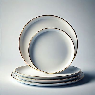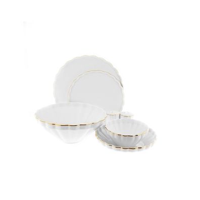 • 27 Teiliges Tafelservice für 6 Personen in Weiß mit Goldumrandung aus Porzellan