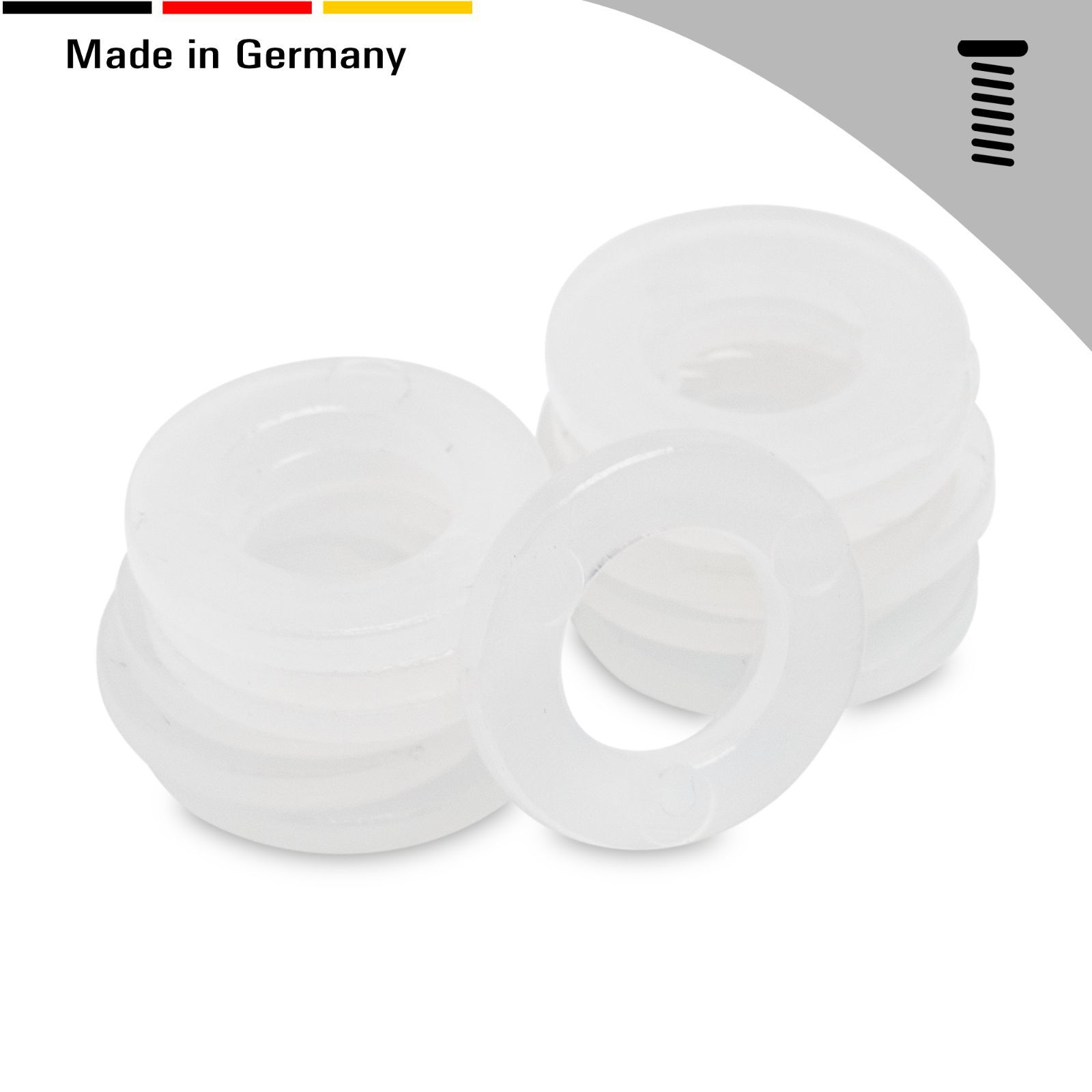 8 U-Scheiben Kunststoff, ähnlich DIN 125, naturfarben, für Schrauben ab M2,3 Abmessungen: Außendurchmesser (D) x Bohrung (d) x Höhe (h) Farbe: Naturfarben Material: Polyamid