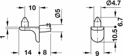 8 x Schüller Fachbodenträger Regalbodenträger Fachträger Einlegeboden mit Stift!