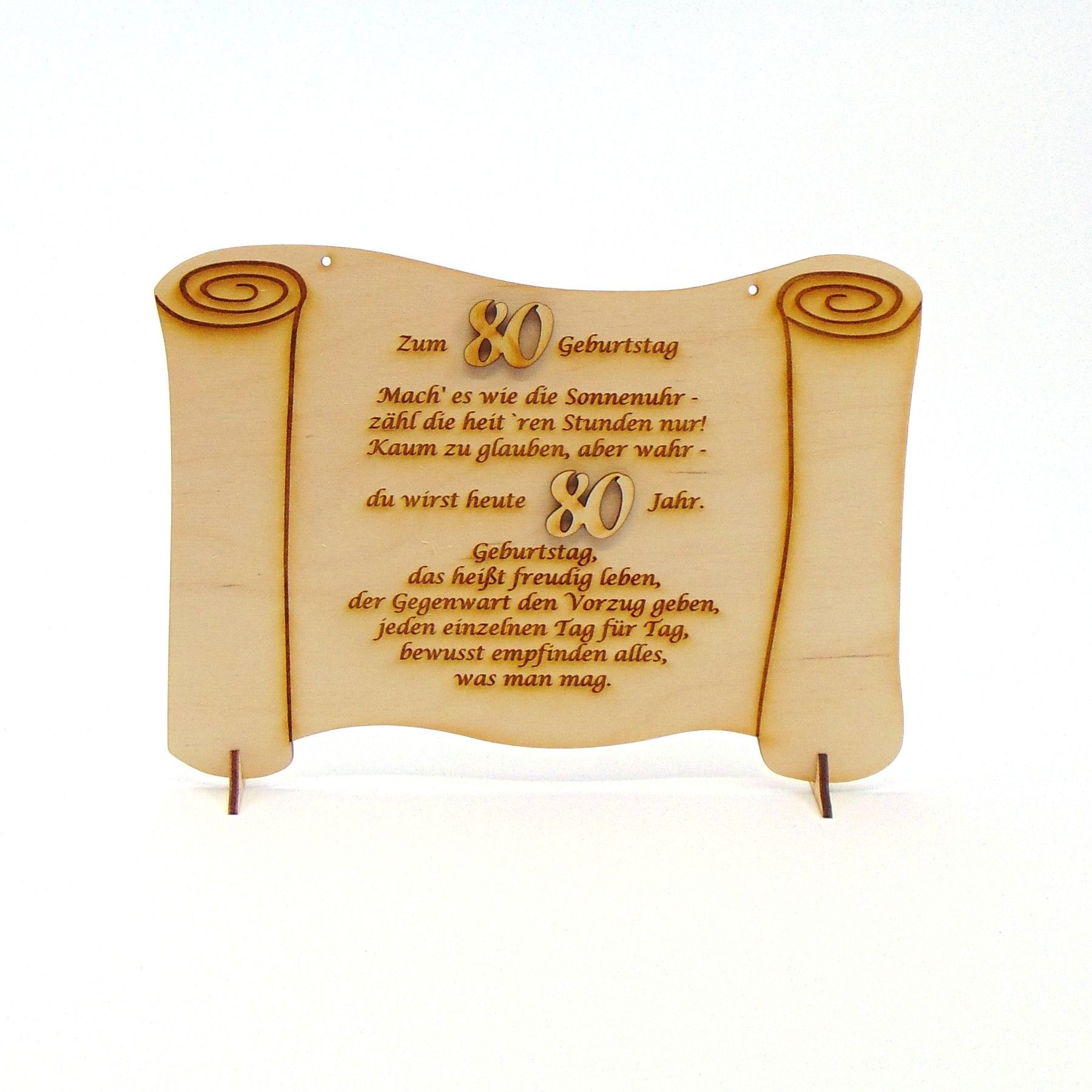 80. Geburtstagsgeschenk Glückwünsche auf einer Holztafel graviert zum 80. Geburtstag