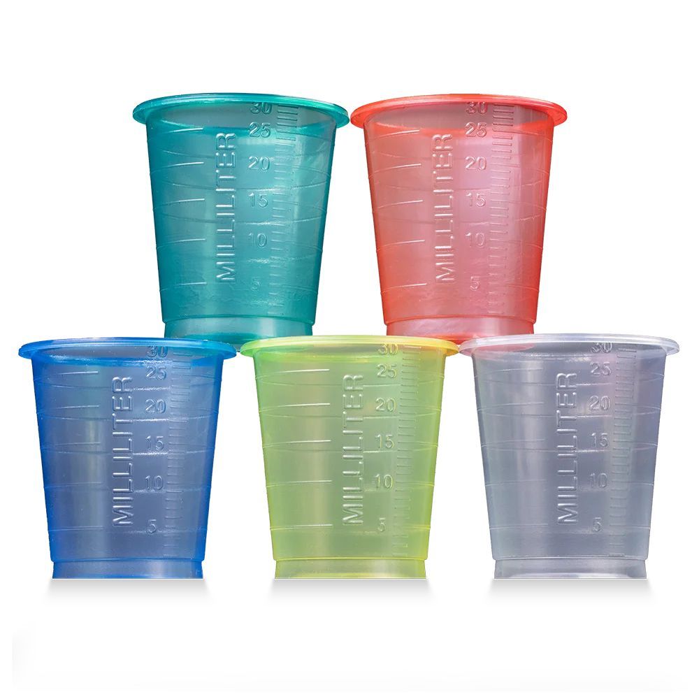 Ampri 80 x Einmal-Medizinbecher in 5 Farben Füllmenge 30 ml