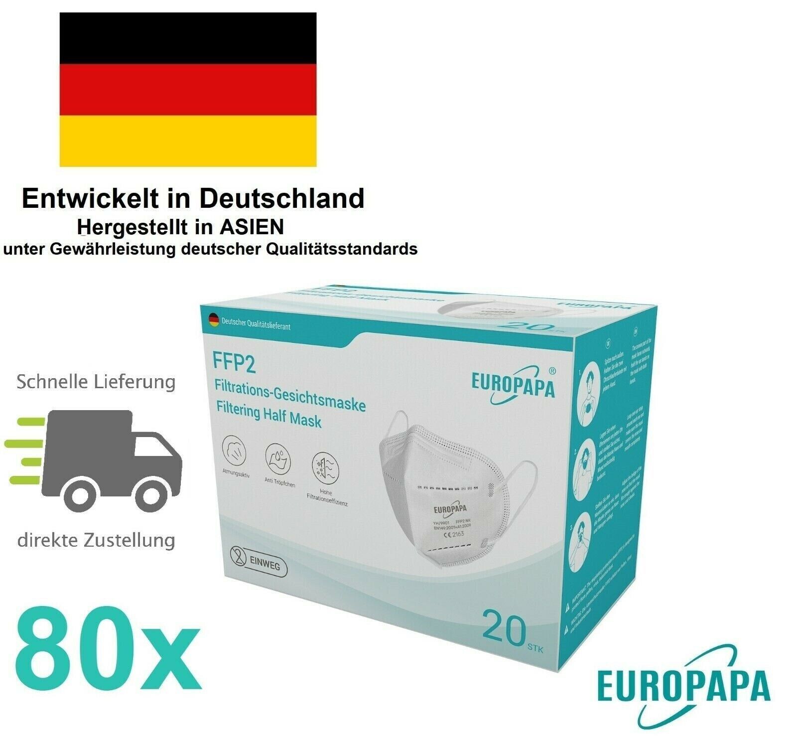 80 x Europapa FFP2 Atemschutzmaske CE2163 Maske FFP 2 Mundschutz Viren NEU