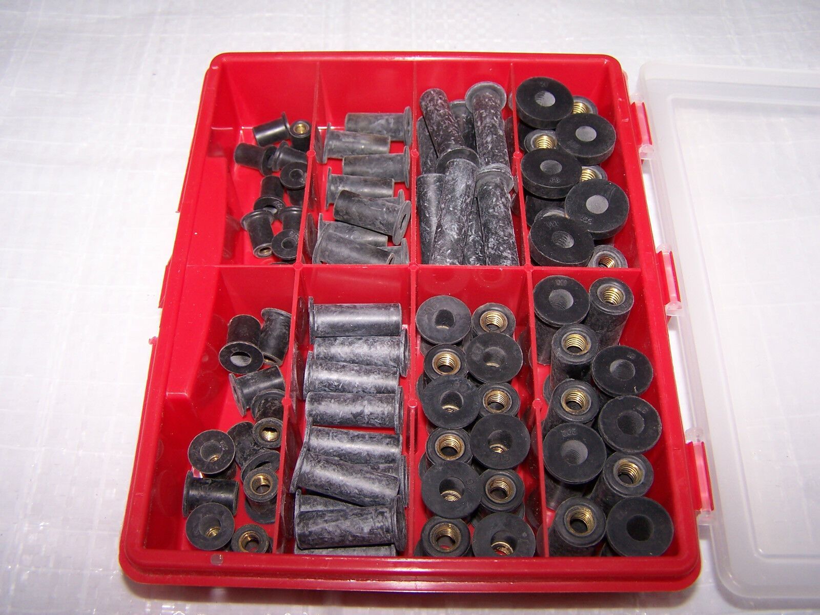 80tlg Sortiment Gummimuttern M4 bis M6 mit Messinggewinde wiederverwendbar