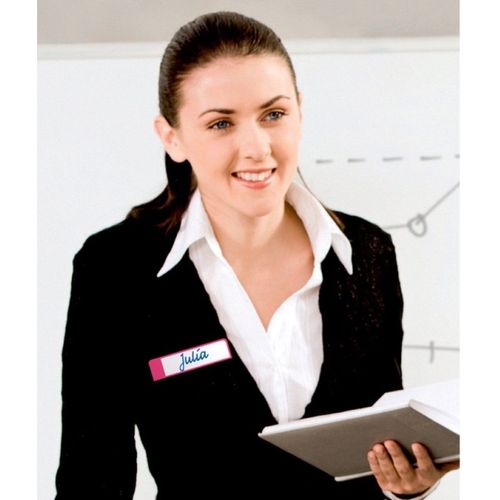 Avery Zweckform 80x Namens-Schilder im Block 25x95mm Weiß Rahmen Pink/Lila