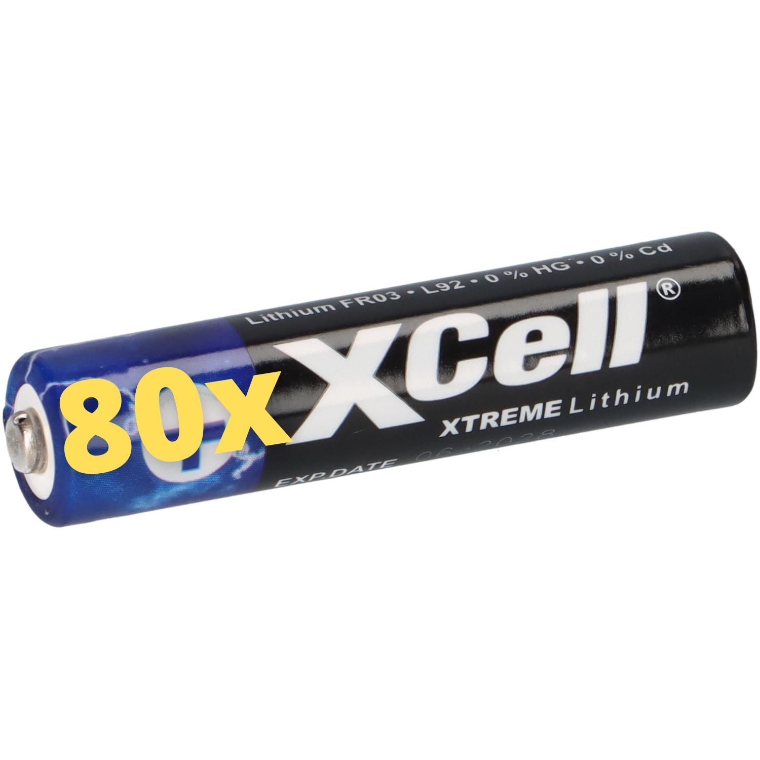 80x XTREME Lithium Batterie AAA Micro FR03 L92 XCell 20x 4er Blister