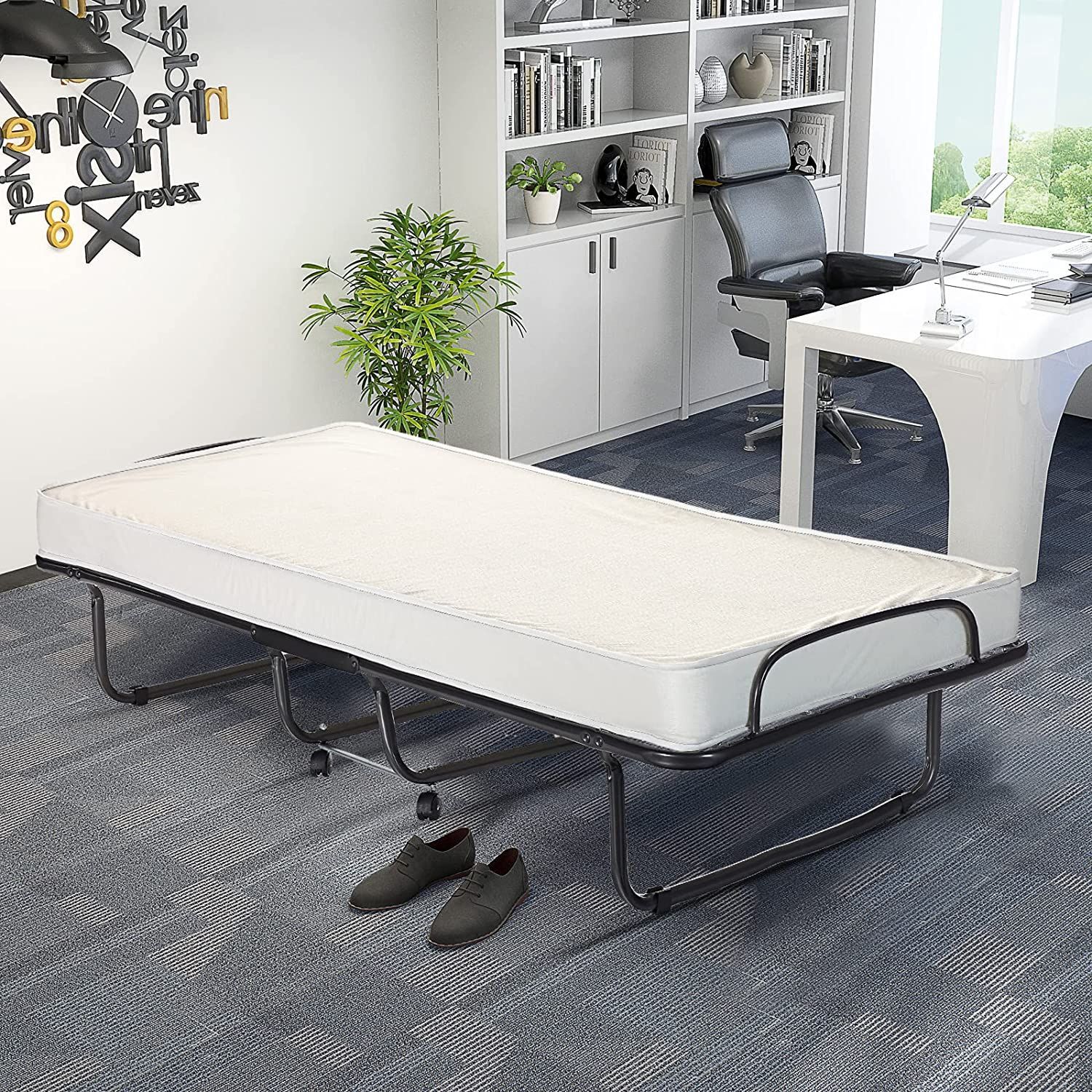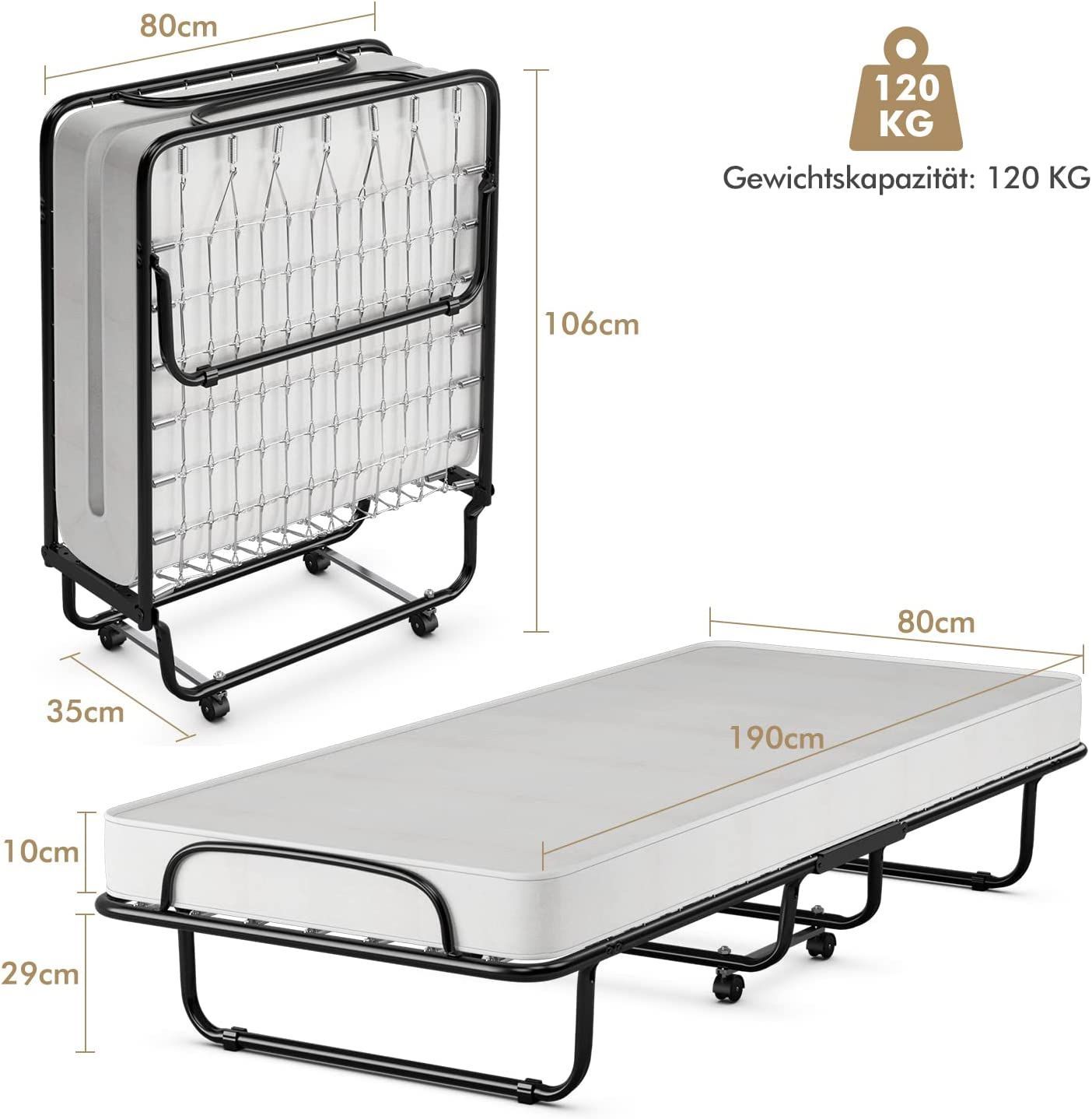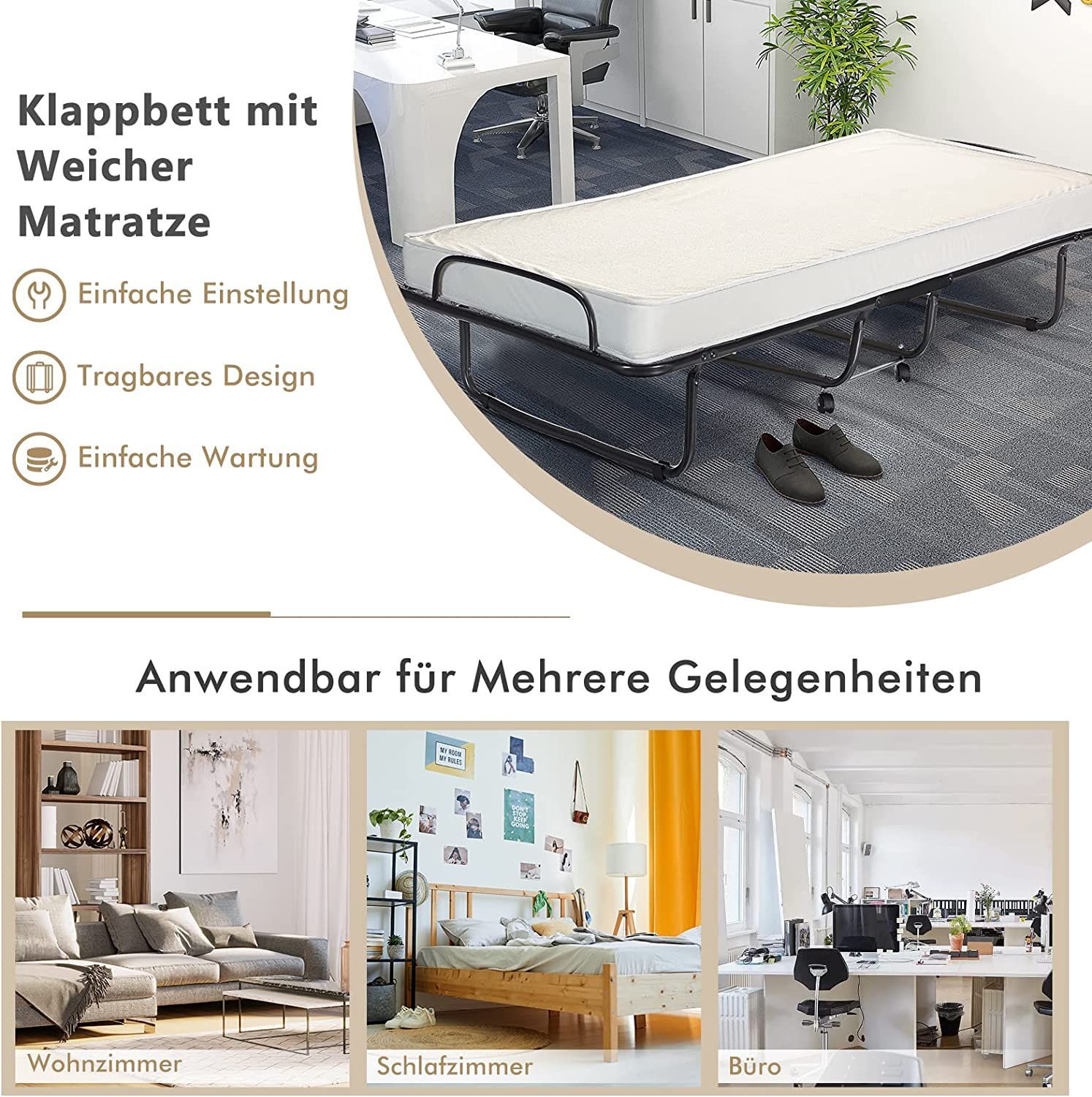 80x190cm Gästebett mit Memoryschaum-Matratze, Klappbares Einzelbett, 120 kg belastbar