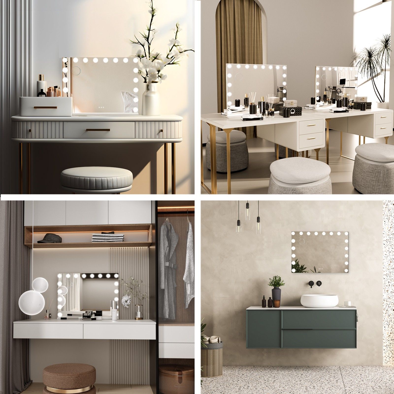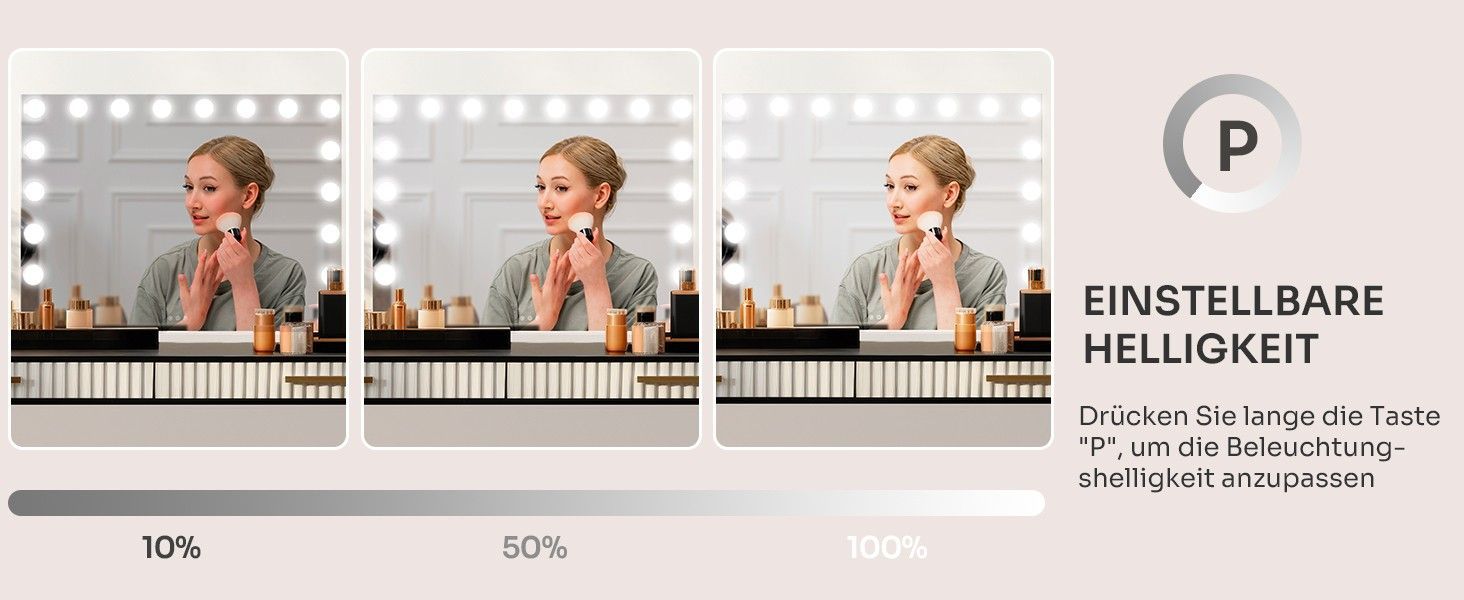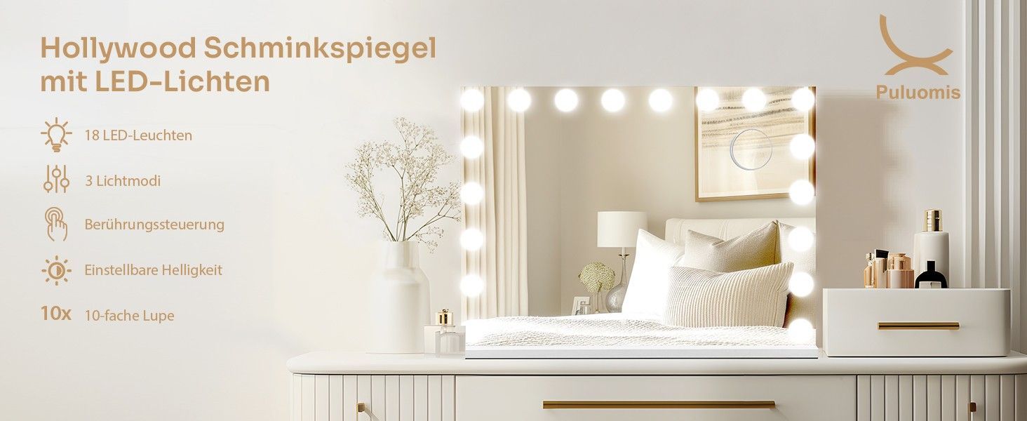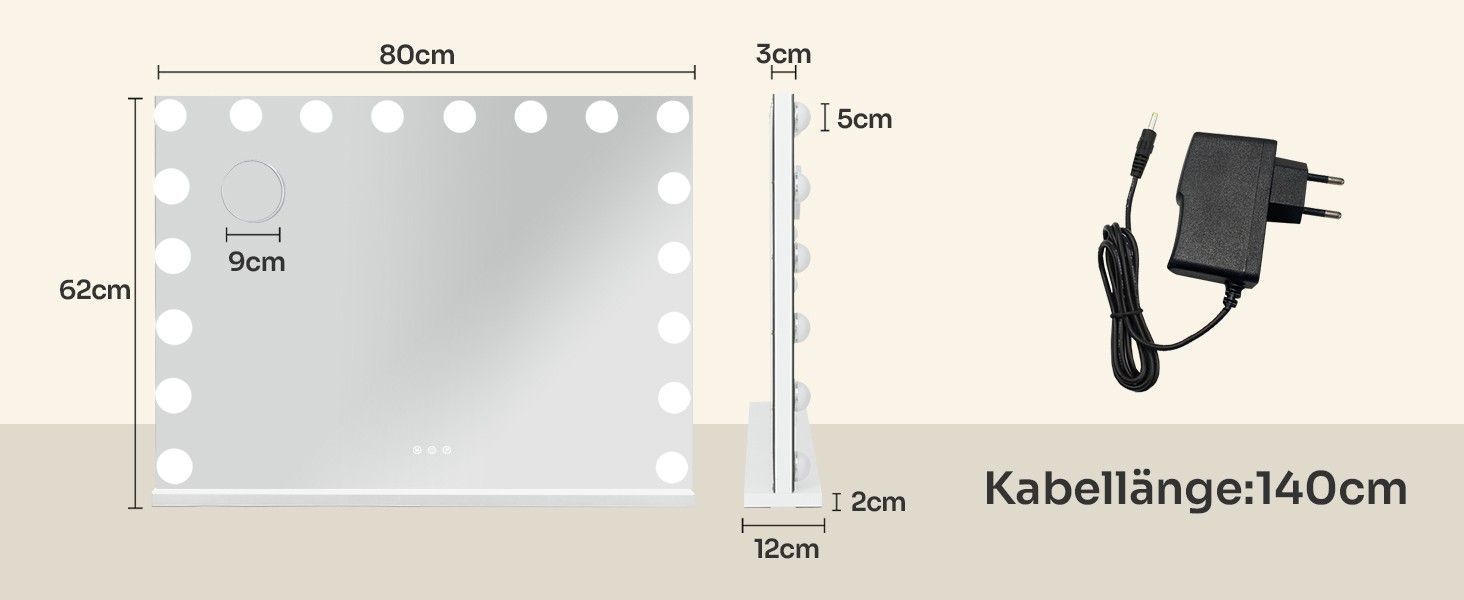 80x62cm Hollywood Schminkspiegel 18 LED Kosmetikspiegel mit Beleuchtung Dimmbar