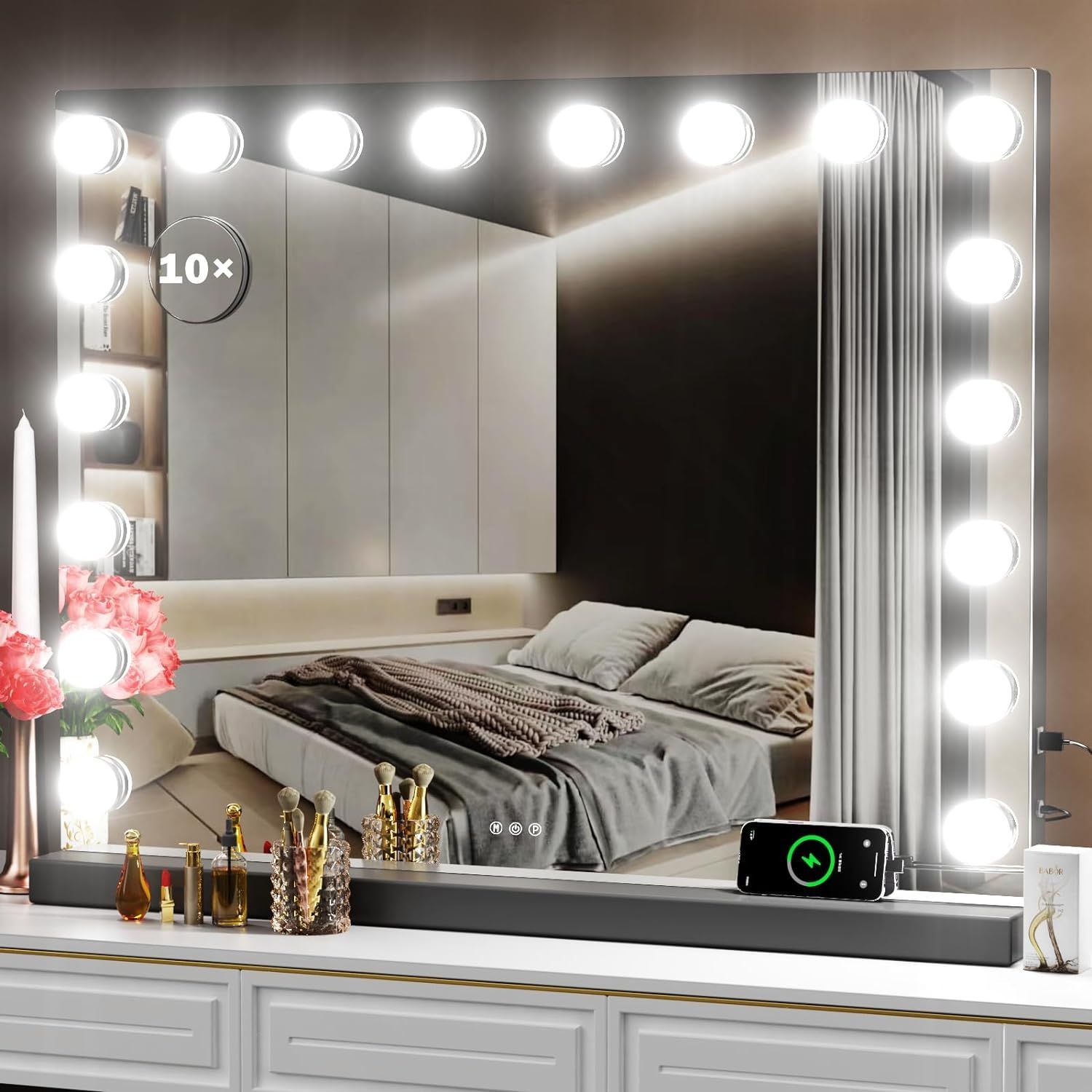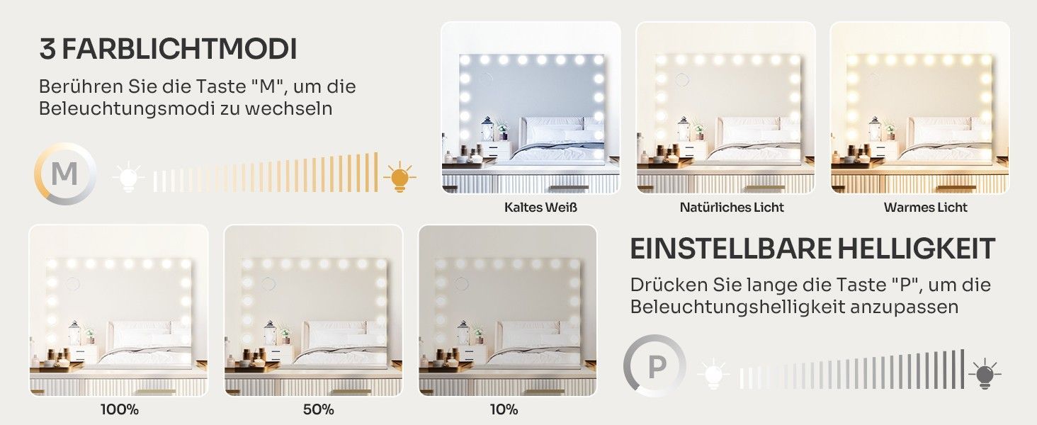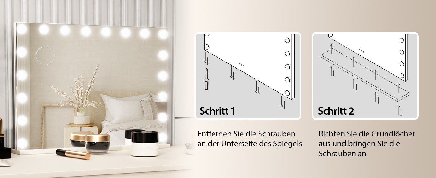 80x62cm Hollywood Schminkspiegel 18 LED Kosmetikspiegel mit Beleuchtung Dimmbar