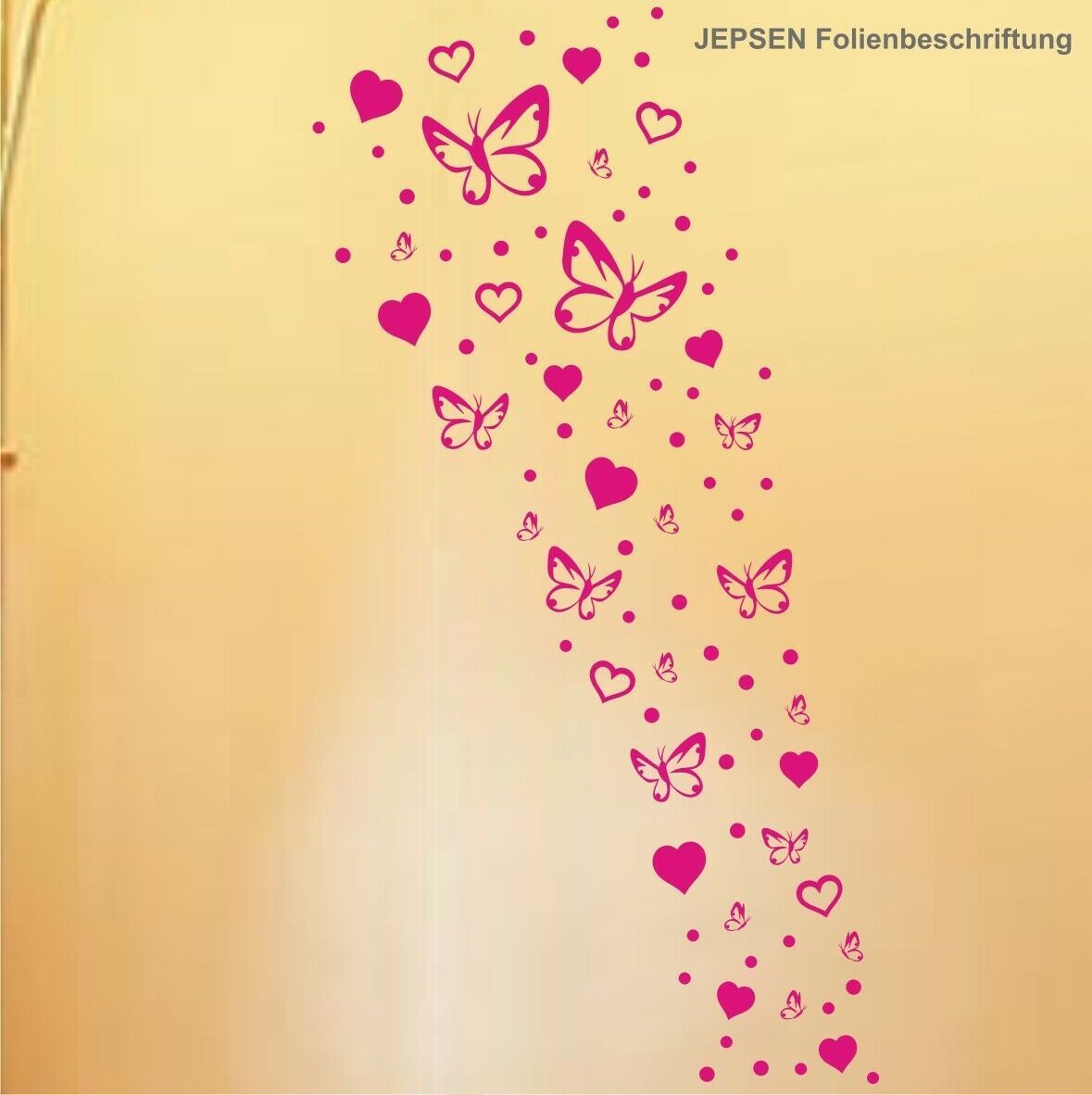 83 teiliges Wandtattoo Set Schmetterlinge Herzen Punkte W55 Farbauswahl