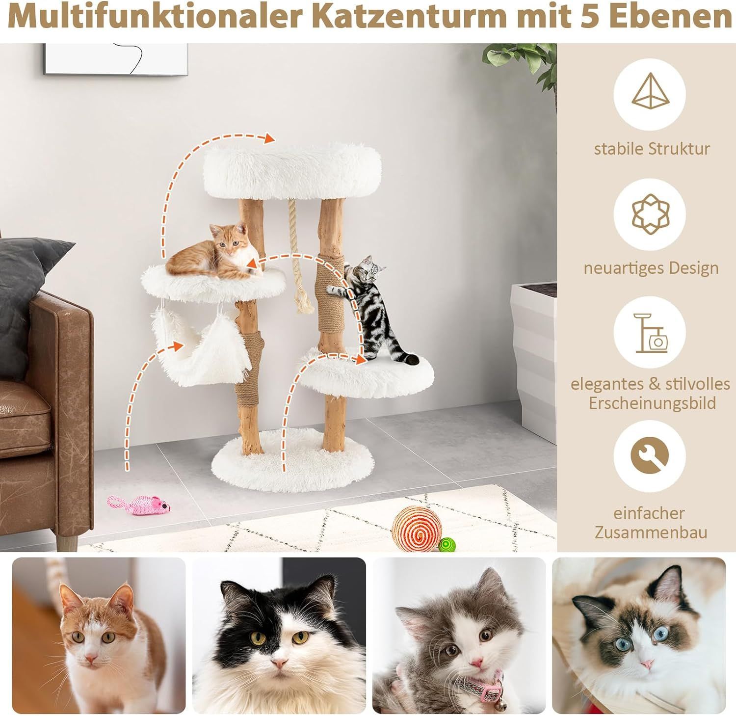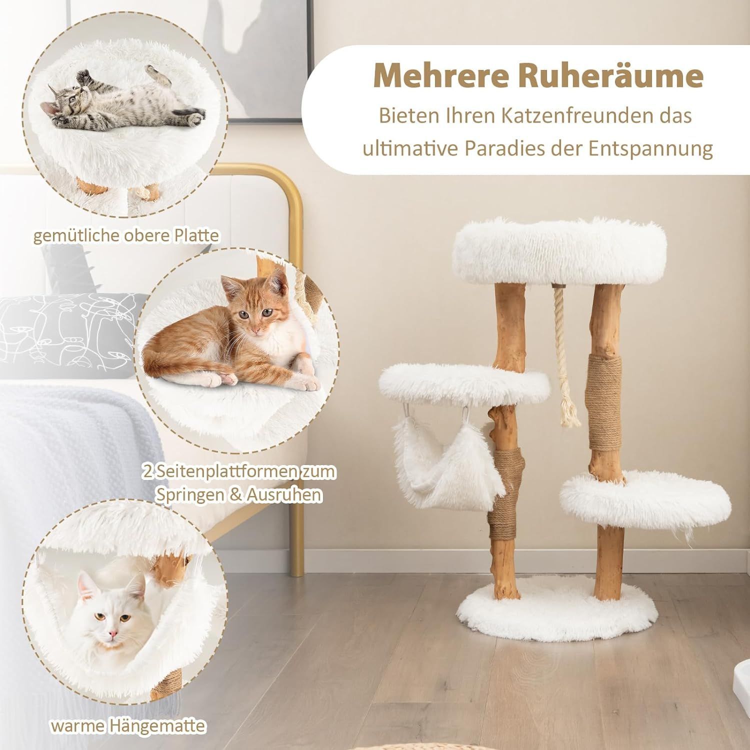 • Fudajo Kratzbaum Zweigdesign Katzenhöhle 80cm Katzenkratzbaum Holz Katzenbaum