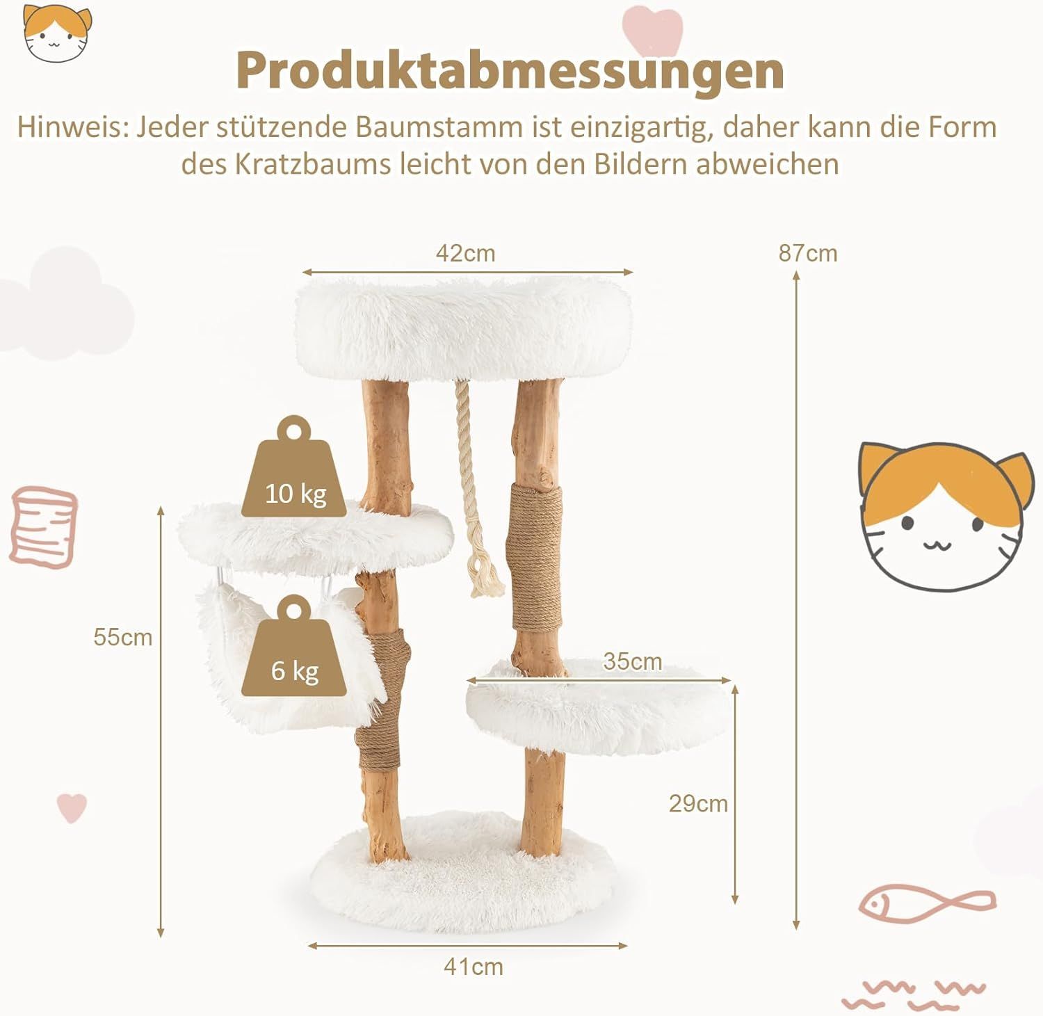 87cm Kratzbaum Holz, Katzenbaum mit Hängematte & Sisalseil & Plüschsitzflächen