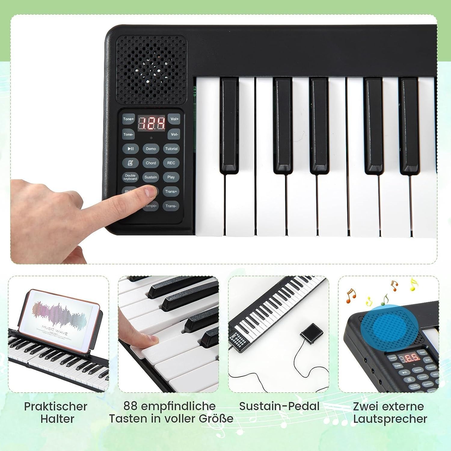 88 Tastatur digitale Keyboard faltbar, Kinder elektrisches Klavier 128 Rhythmen