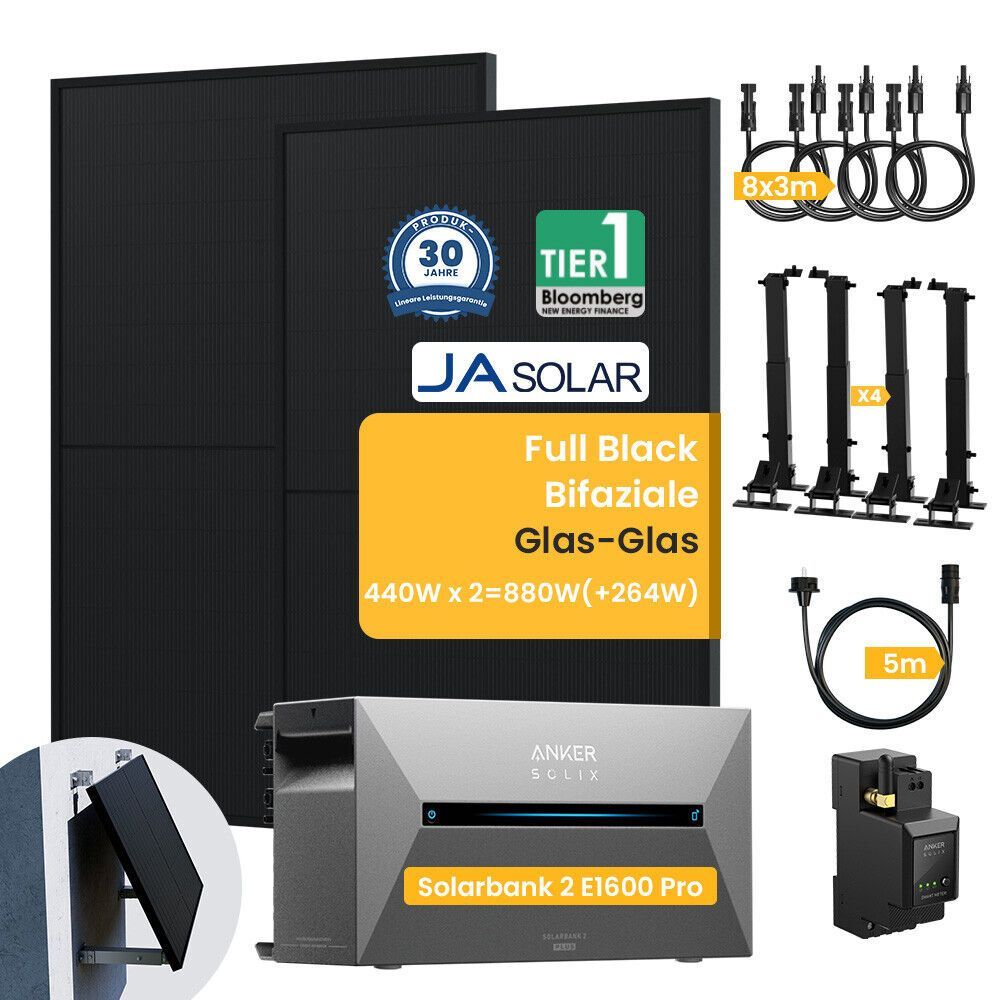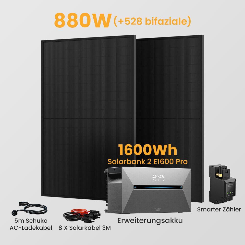 880W Bifazial Balkonkraftwerk mit Anker Solarbank 2 E1600 Pro 1600Wh Speicher
