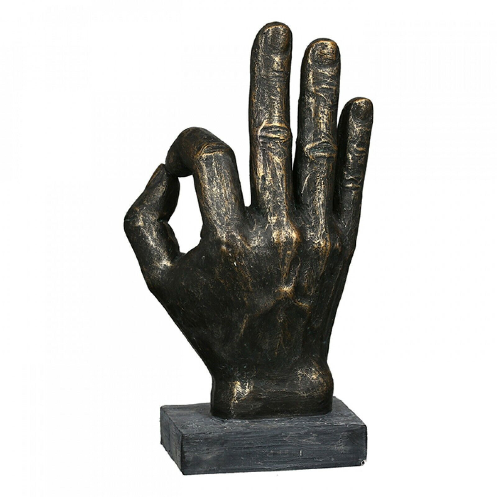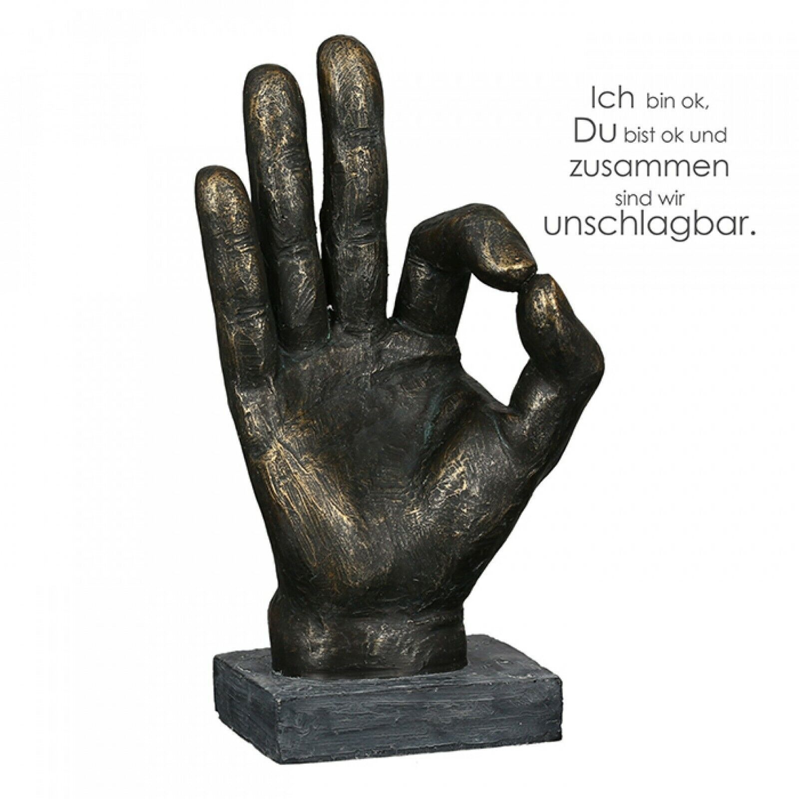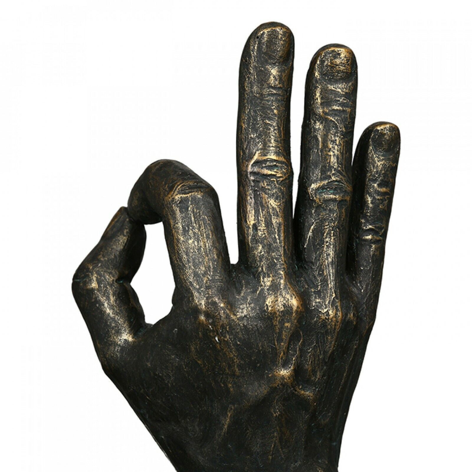 89342 Skulptur Okay Poly bronzefarben Hand mit Okay-Zeichen-Finger auf Basis