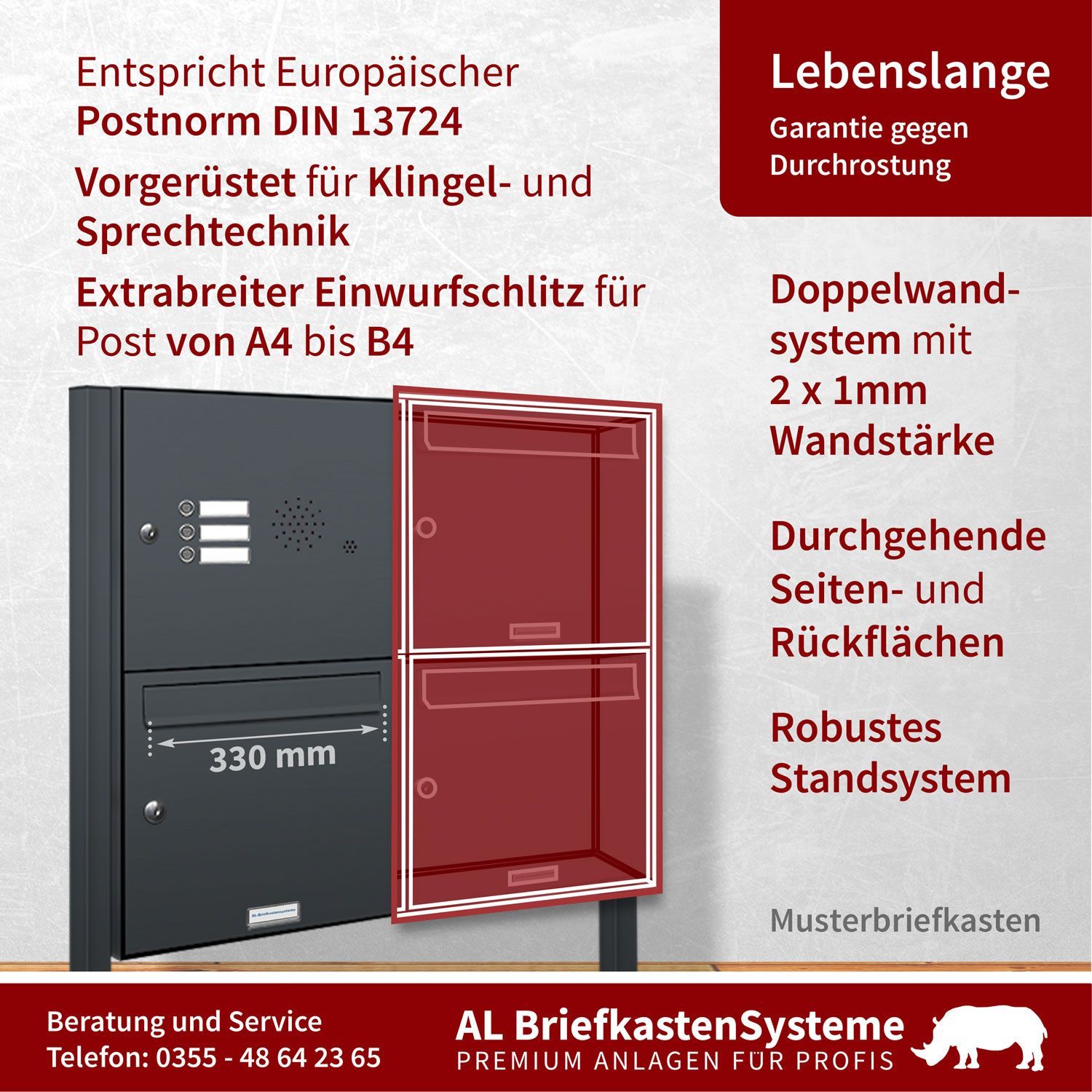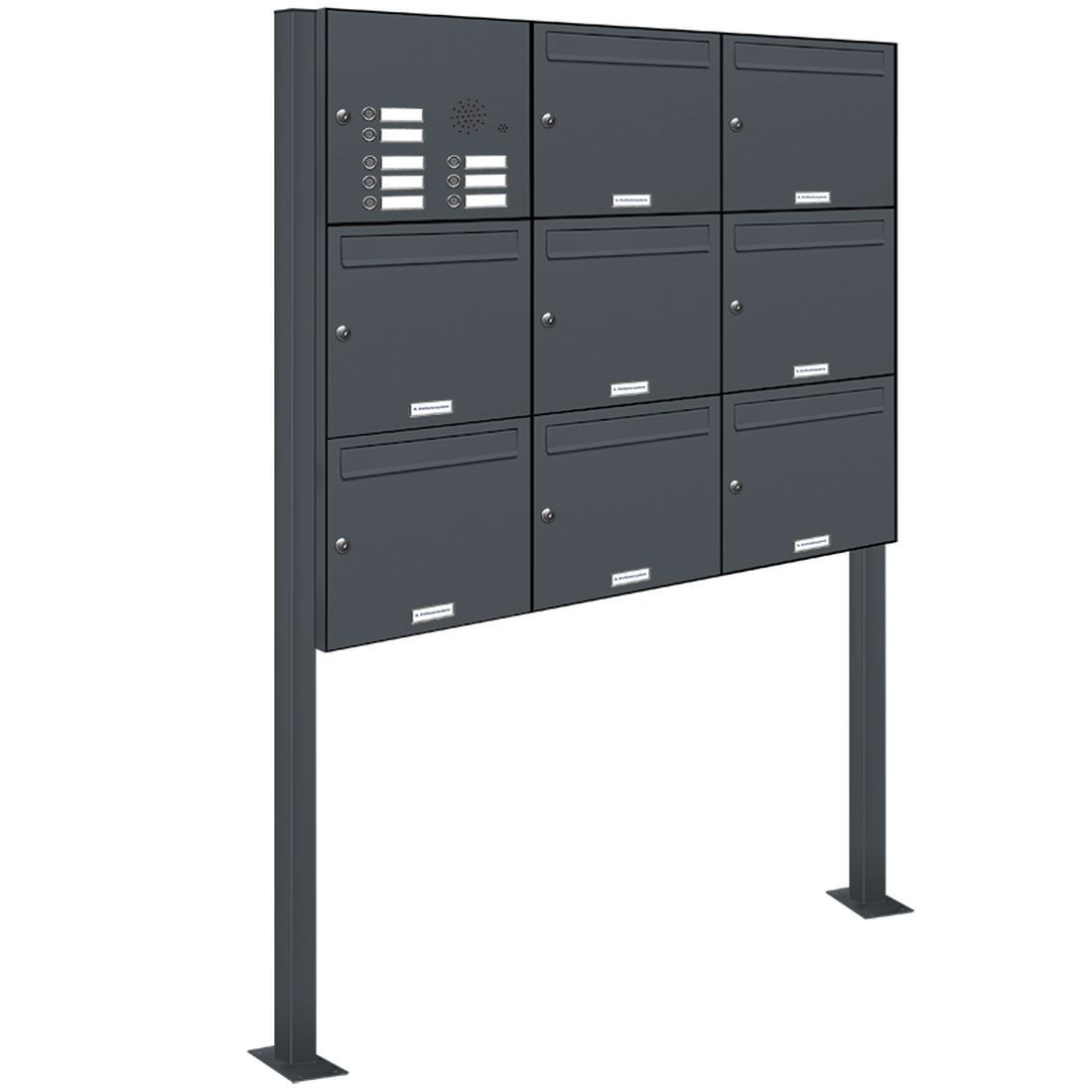 8er Premium Standbriefkasten mit Klingel RAL 7016 Postkasten Ständer 3x3