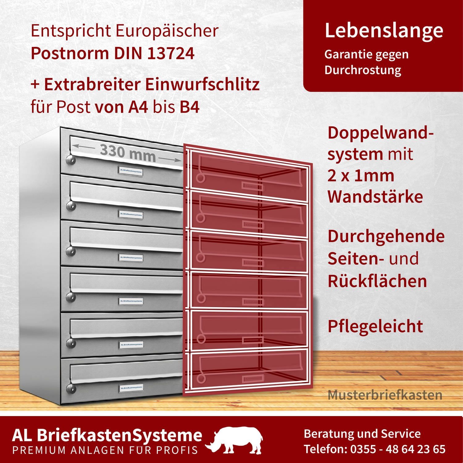 8er Premium V2A Edelstahl Briefkasten Anlage Außen Wand Design Postkasten 2x4 L