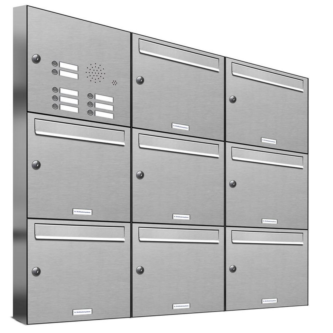 8er Premium V2A Edelstahl Briefkasten Außen Klingel Wand Postkasten design 3x3