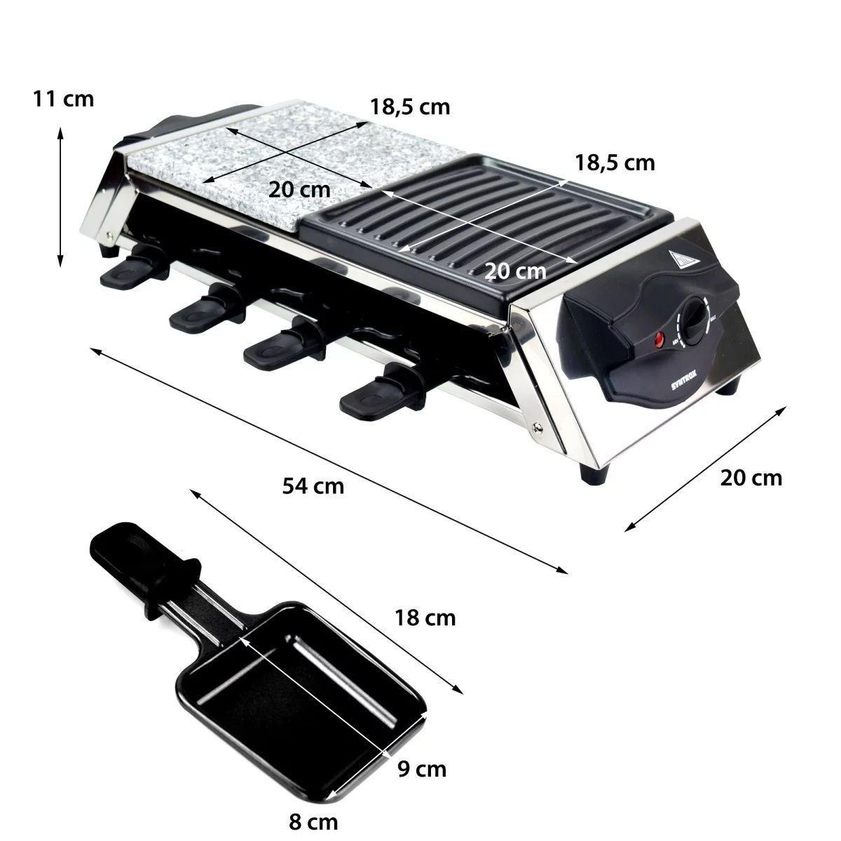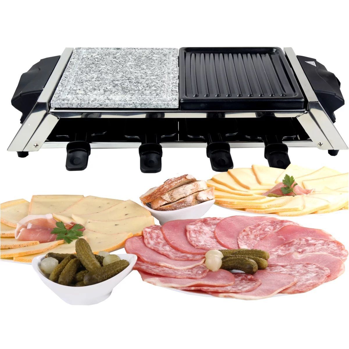 8er Raclette Grill | Tischgrill | Steinplatte | Emailliert Gent