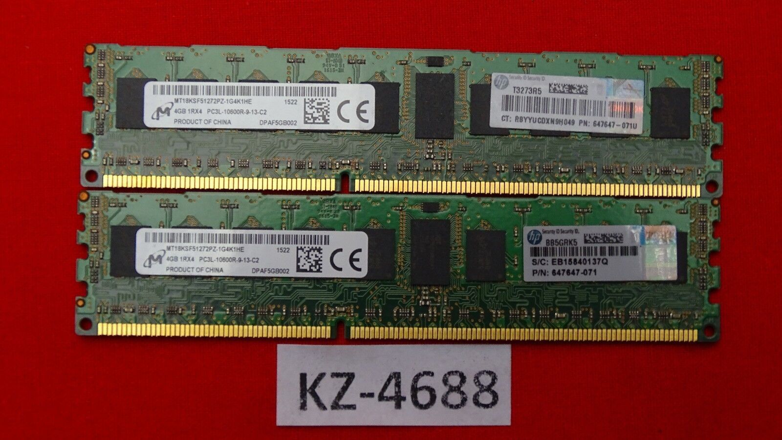 2x Micron MT18KSF51272PZ-1G4K1HE 4GB 1Rx4 PC3L-10600R DPAF5GB002 T3273R5 647647-071U