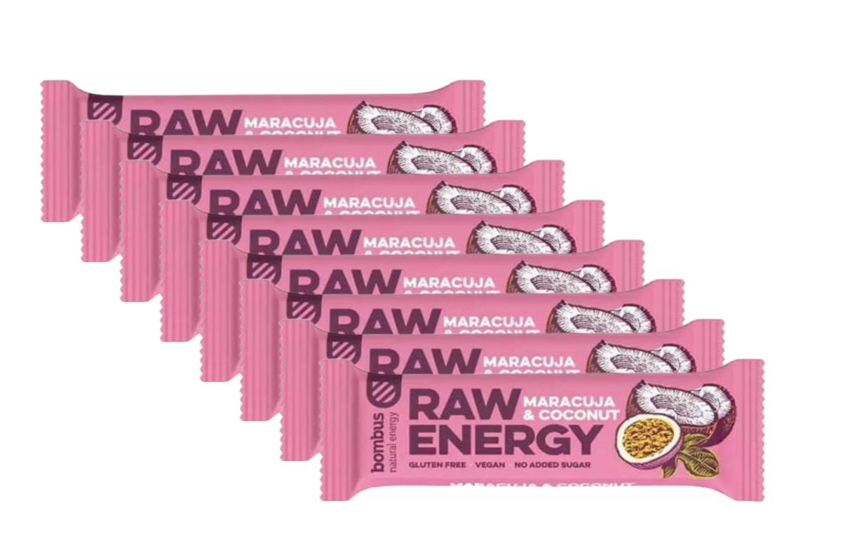8x 50g Raw Energy Riegel Maracuja Kokos Bar Glutenfrei Ohne Zuckerzusatz Vegan