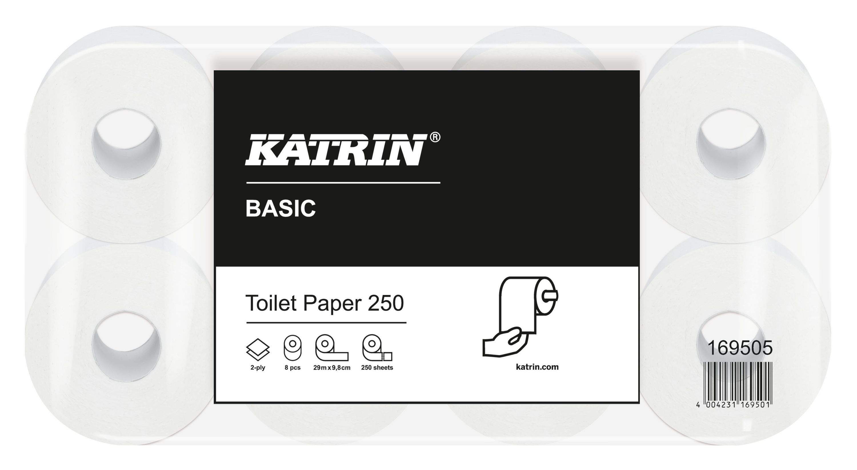 KATRIN 8x KATRIN® 169505 Toilettenpapier Basic Toilet - 2-lagig, naturweiß, 8 Rollen à 250 B