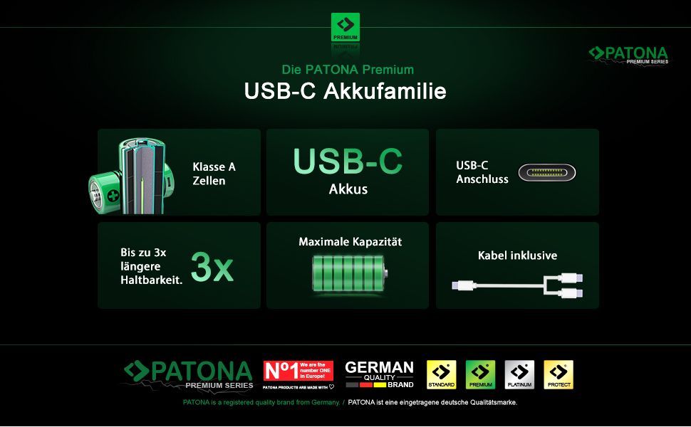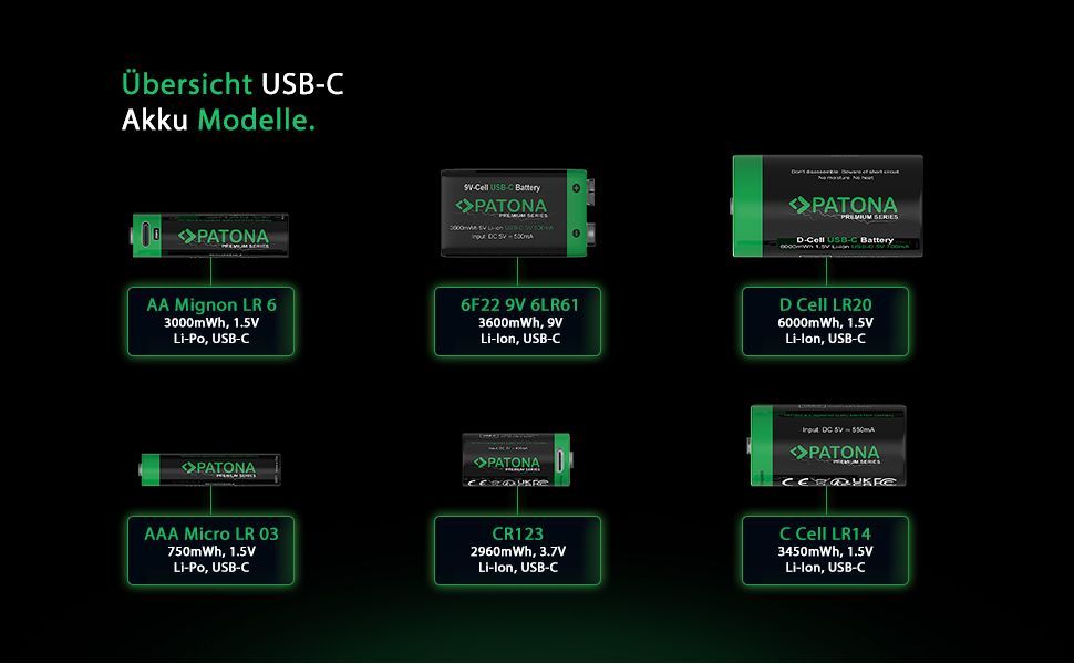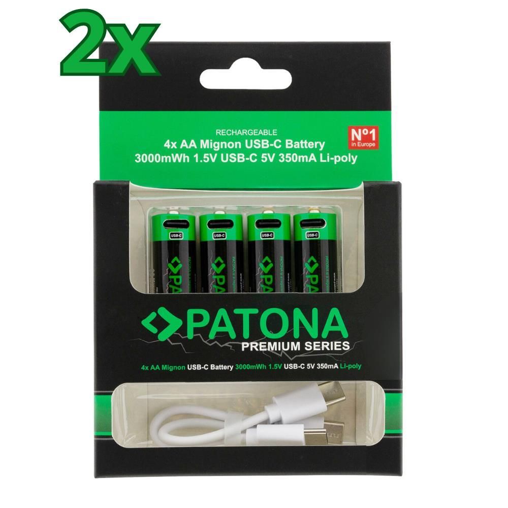8x PATONA Premium USB-C 4x AA Akkus Lithium 1.5V 3000mWh (2x 4er Blister)