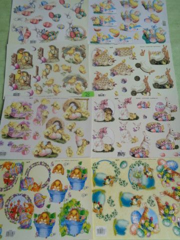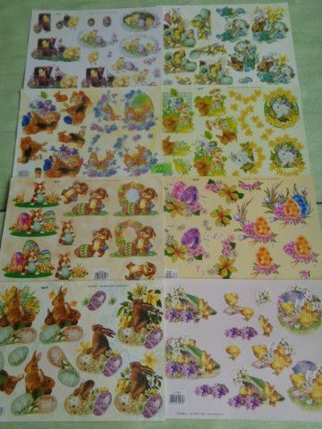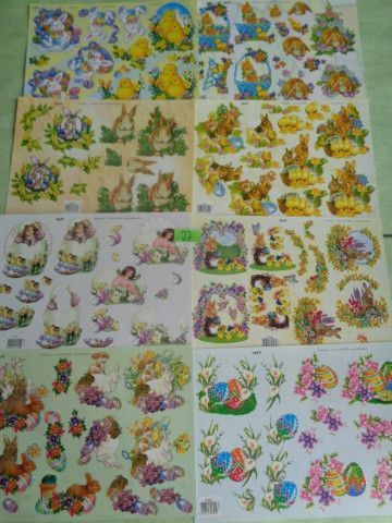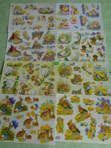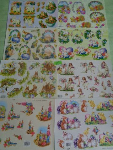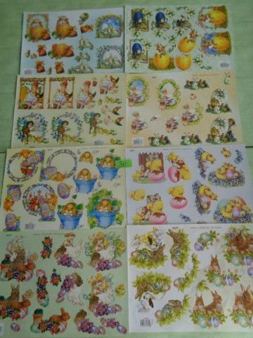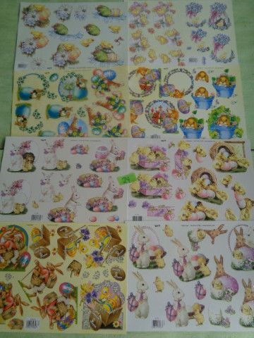 8x TBZ 3D Schneide- Stanzbogen geprägt Folienverziert Ostern Osterhase Küken Osterei