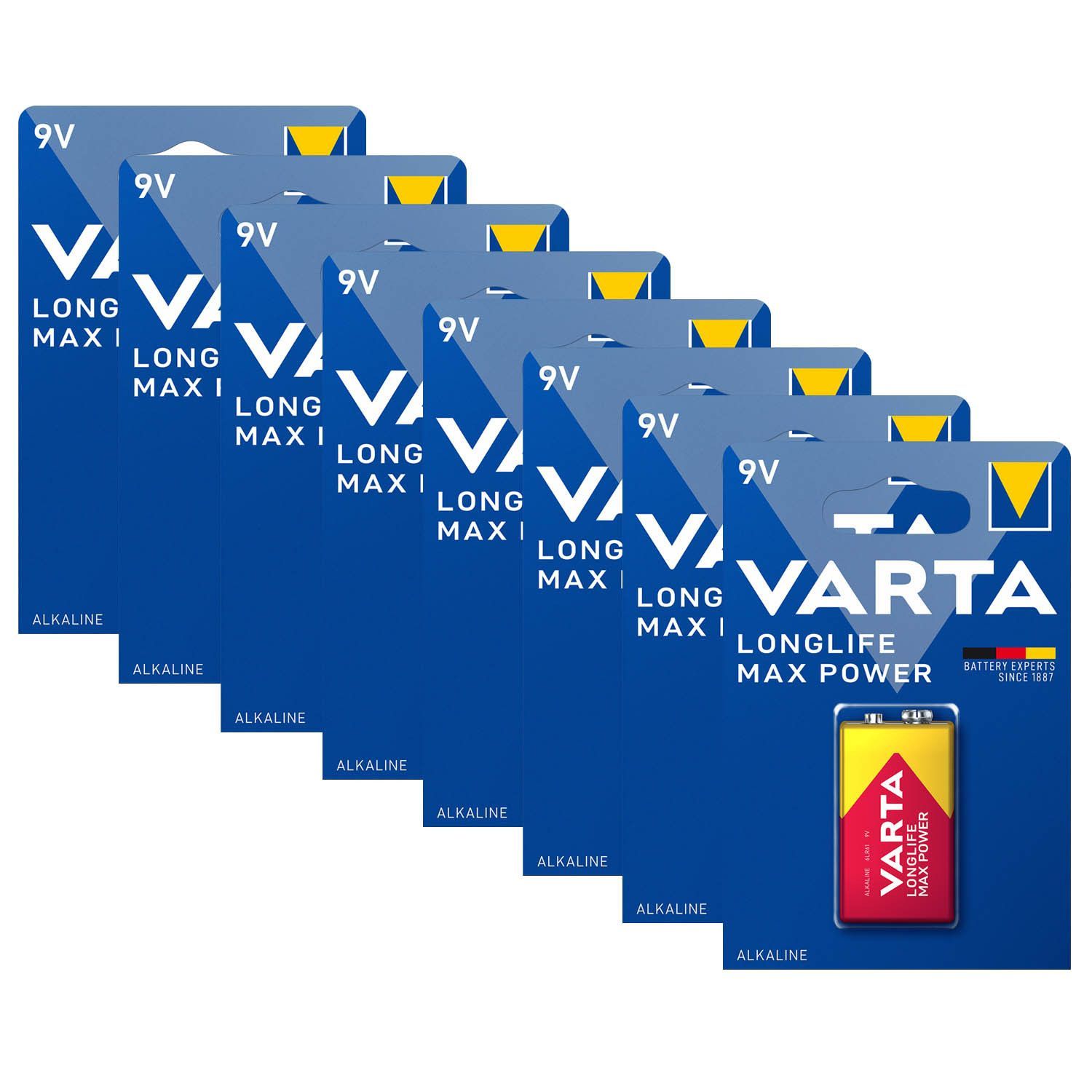 Varta 8x VARTA 9V Block Longlife Max Power Alkaline Batterie 6LR61 MN1604