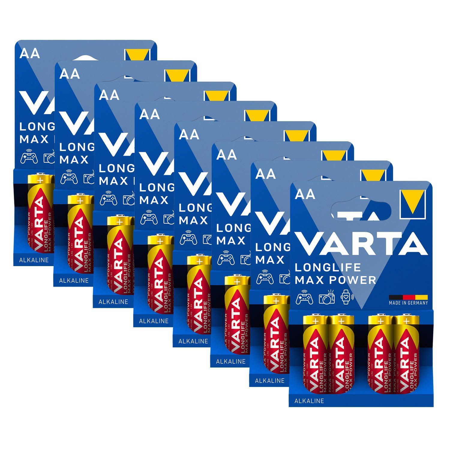 Varta 8x Varta Longlife Max Power Batterien AA Mignon LR6 1,5V Batterie 4er Blister