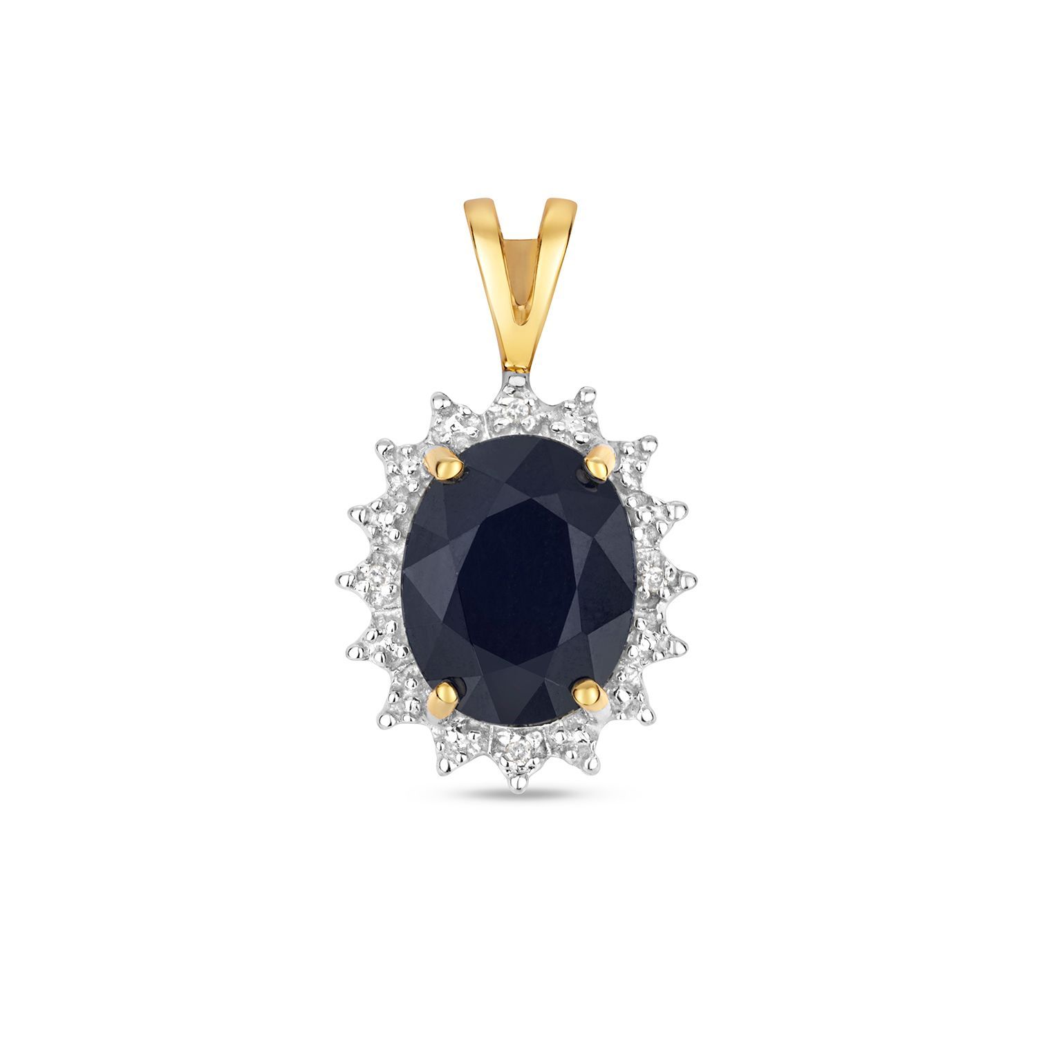 9 ct/Karat Gelb Gold Damen - Diamant Anhänger Brillant-Schliff H - PK mit Saphir